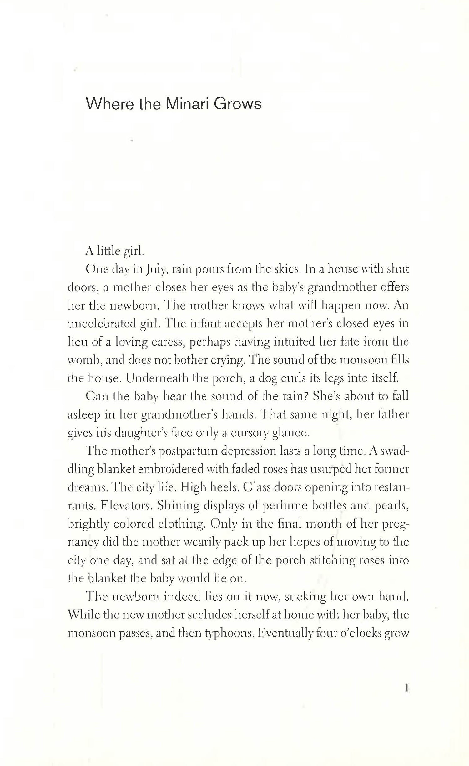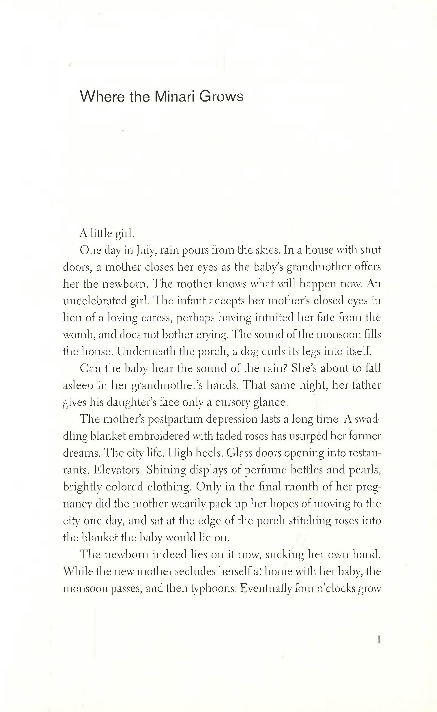 San is a lonely child, ostracised from her community. She soon finds a friend in a girl called Namae, until one afternoon changes everything. Following a moment of intimacy in a minari field, Namae violently rejects San, setting her on a troubling path.