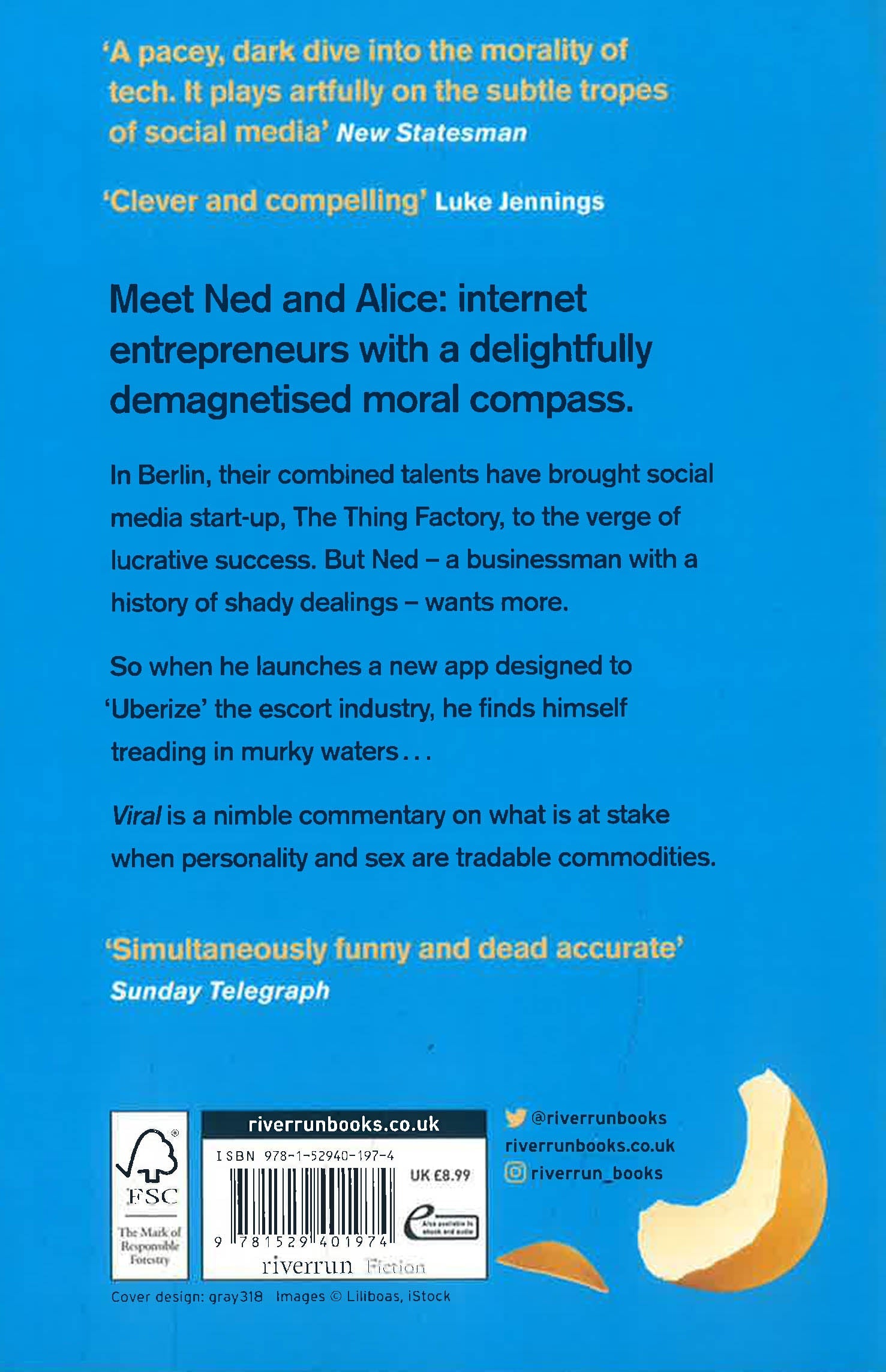 Both a satire on the social media age and a fast-paced suspense novel, Viral is a nimble commentary on power and control, the lengths people will go to acquire both, and what is at stake when personality and sex are tradable commodities.