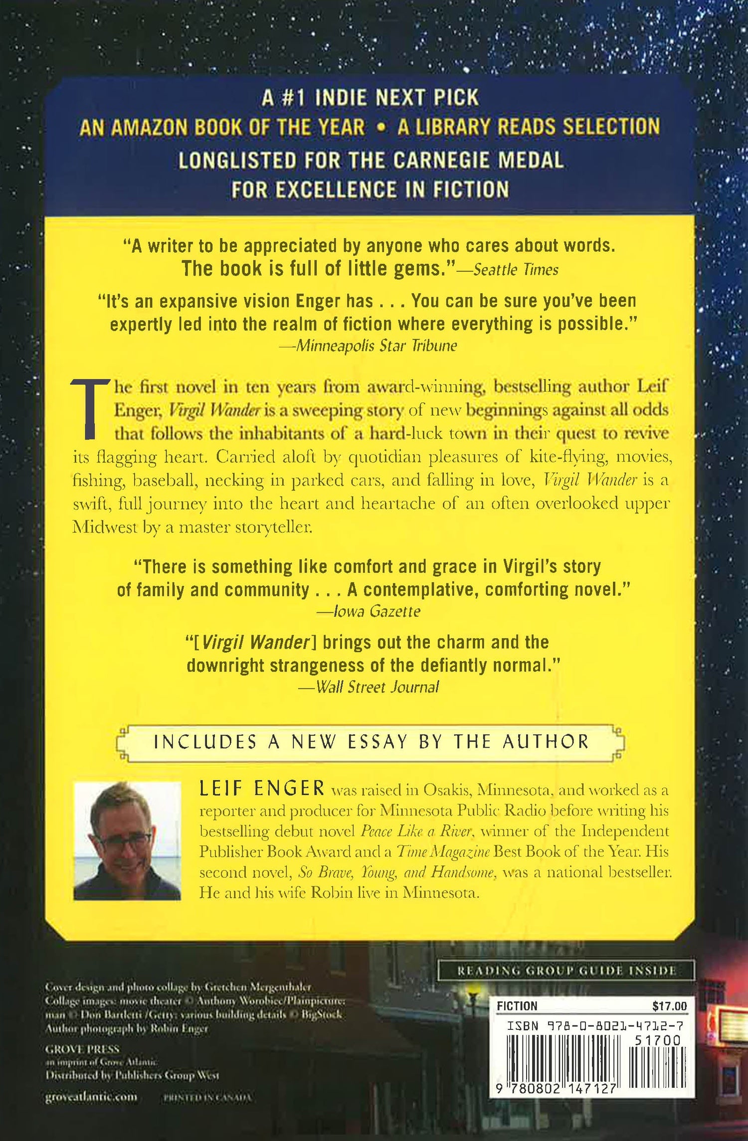 The first novel in ten years from award-winning, bestselling author Leif Enger, Virgil Wander is a sweeping story of new beginnings against all odds that follows the inhabitants of a hard luck town in their quest to revive its flagging heart. Carried aloft by quotidian pleasures of kite-flying, movies, fishing, baseball, necking in parked cars and falling in love, Virgil Wander is a swift, full journey into the heart and heartache of an often overlooked upper Midwest by an award-winning master storyteller.