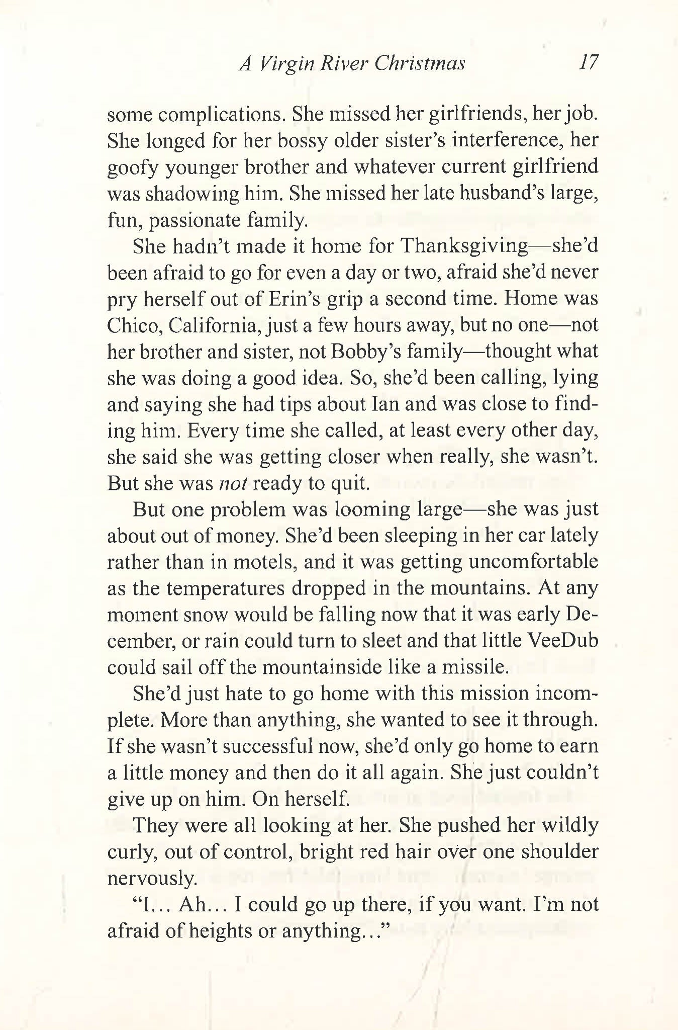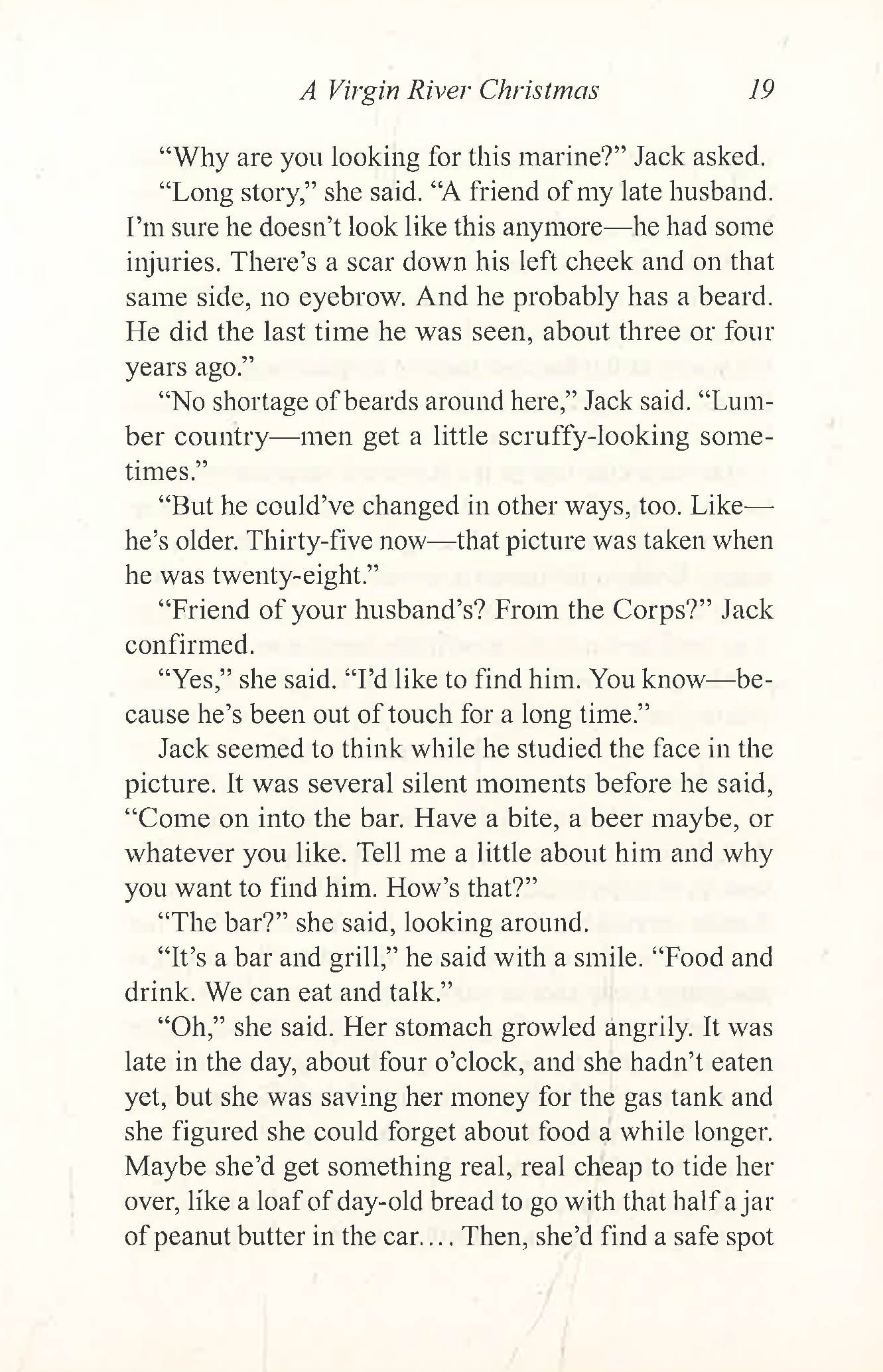 Last Christmas Marcie Sullivan said a final goodbye to her husband, Bobby. This Christmas she's come to Virgin River to find the man who saved his life and gave her three more years to love him.