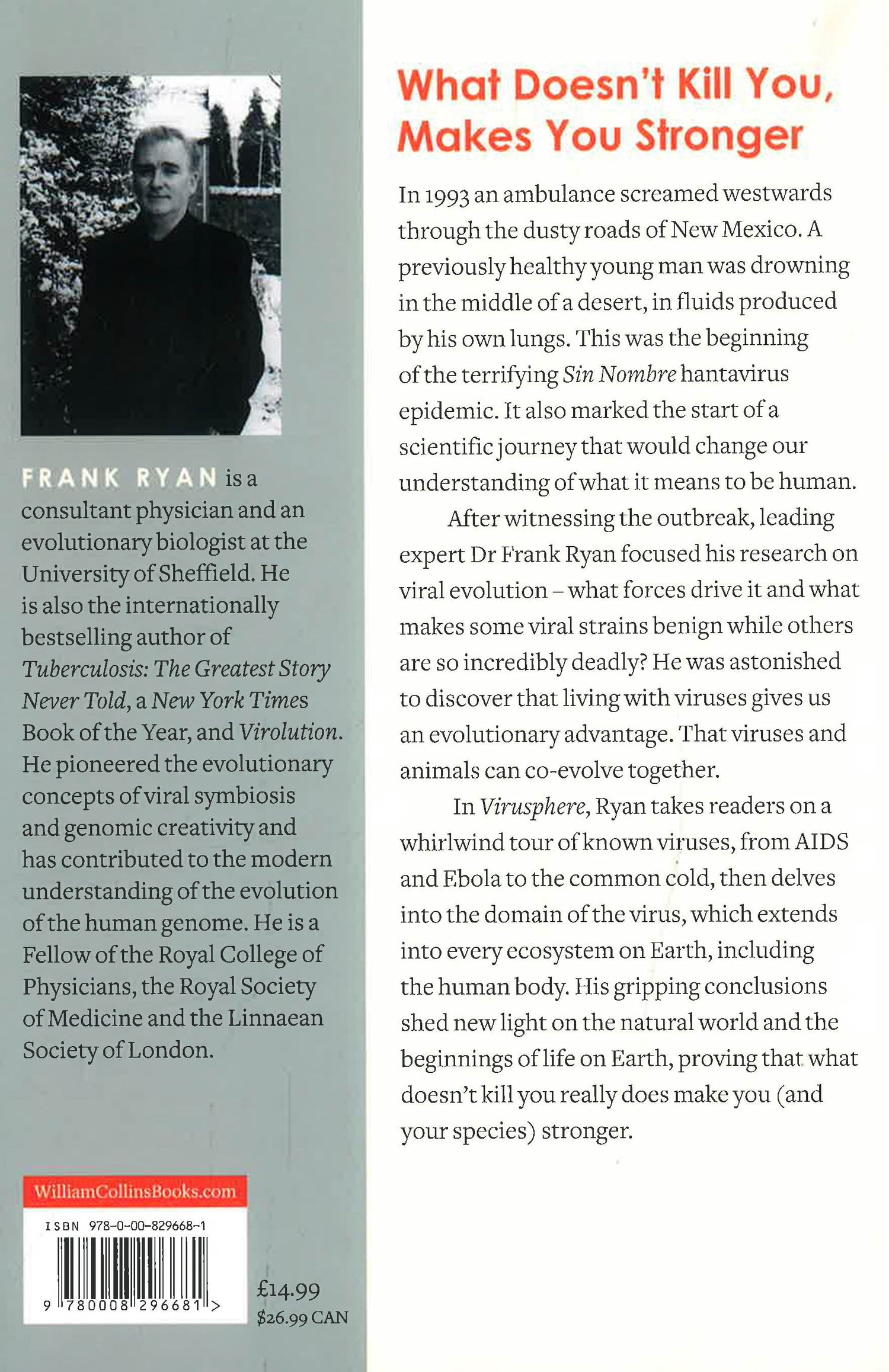 A virologist's insight into how viruses evolve and why global epidemics are inevitable In 1993 a previously healthy young man was drowning in the middle of a desert, in fluids produced by his own lungs. This was the beginning of the terrifying Sin Nombre hantavirus epidemic and the start of a scientific journey that would forever change our understanding of what it means to be human. After witnessing the Sin Nombre outbreak, Dr Frank Ryan began researching viral evolution and was astonished to discover that it's inextricable from the evolution of all life on Earth. From AIDS and Ebola to the common cold, Ryan explores the role of the virus within every ecosystem on the planet. His gripping conclusions shed new light on the natural world, proving that what doesn't kill you really does make you (and your species) stronger.