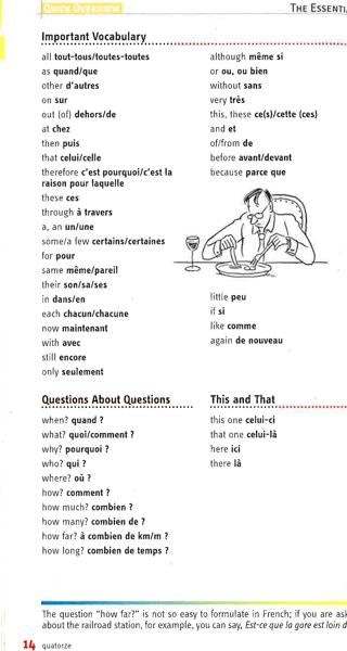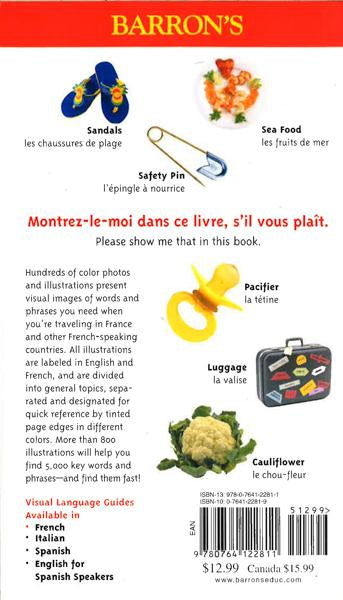 International travelers will value this quick-reference vocabulary and phrase builder. Hundreds of color photos and cartoon-style illustrations present visual images of words and phrases that travelers typically need when they are getting around in France or French-speaking Canada. Here's how to ask for gasoline when driving into a service station--with pictures and bilingual phrases and answers to dramatize the situation. Here too are words and pictures depicting all kinds of food and drink--a pineapple, a mug of cold beer, a sandwich, a fresh apple. The book is color-coded along page edges according to topics to help travelers find what they're looking for in a hurry. General topics include transportation, accommodations, food shopping, department store shopping, furniture and appliances, sports and recreation, and many others. This good-looking book also makes a handy reference source for language students.