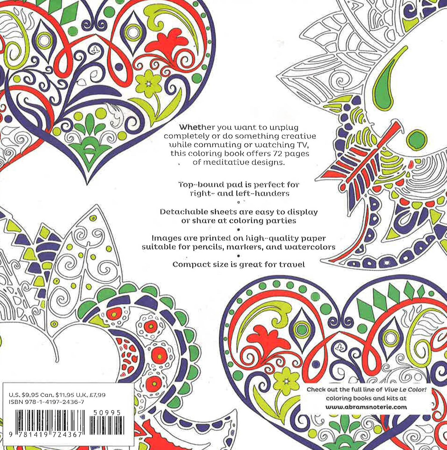 Whether you want to unplug completely or be creatively engaged while commuting or watching TV, this adult coloring book offers 72 pages of beautiful and meditative designs featuring hearts in every artistic style: Celtic hearts, folk art hearts, winged hearts, flower-filled hearts, mandalalike heart patterns, and designs with the word "love."* Top-bound coloring pad is perfect for the right- and left-handed* Detachable sheets make it easy to display your finished work or share pages at coloring parties* 72 illustrations are printed single-sided on high-quality paper that is suitable pencils, markers, and watercolors* Compact size is great for travel, and a smaller page is less time-consuming to complete* Pad has a thick backer board so that you can color with the book on your lap