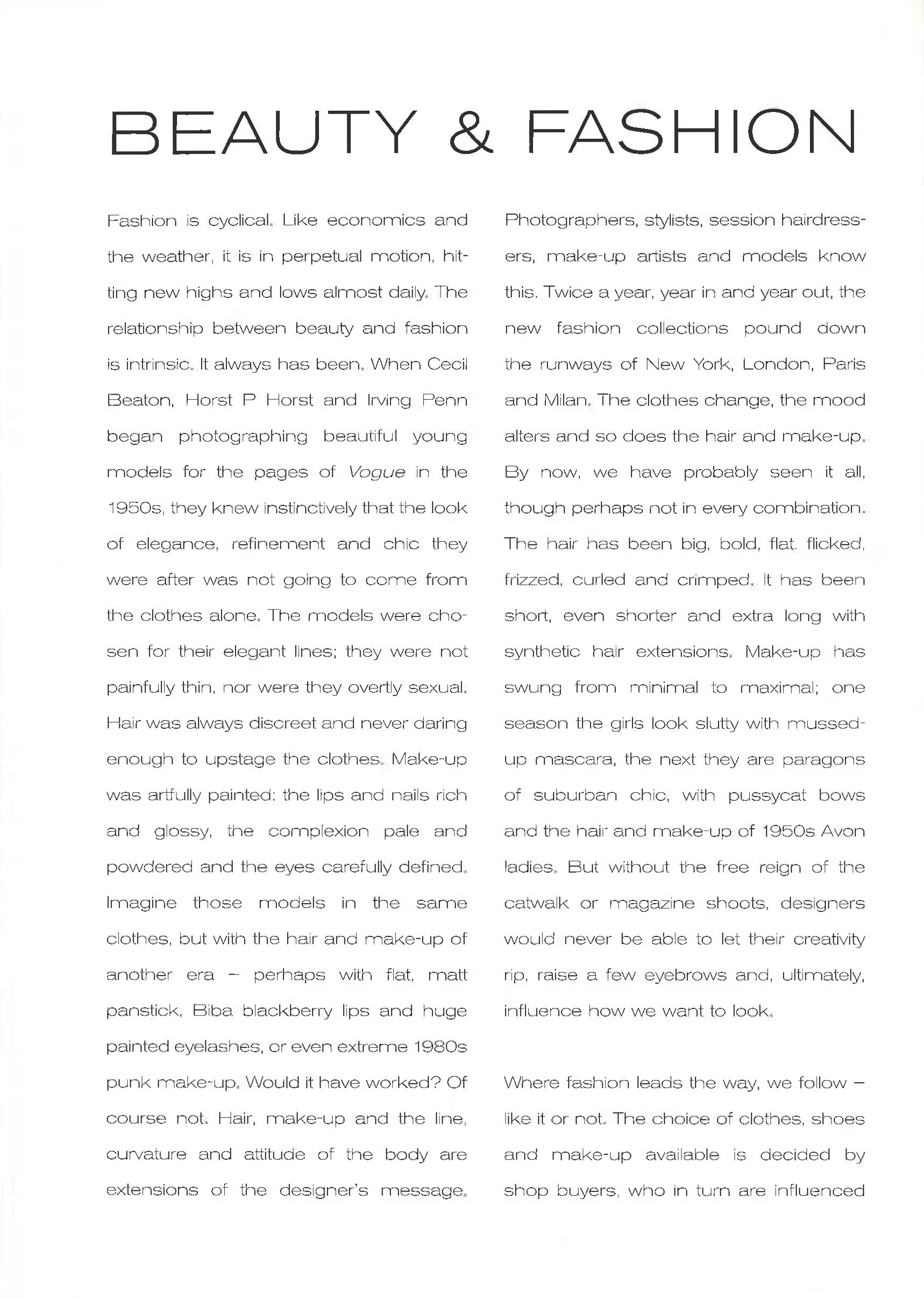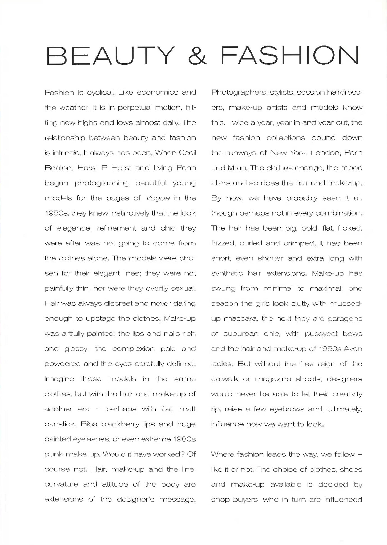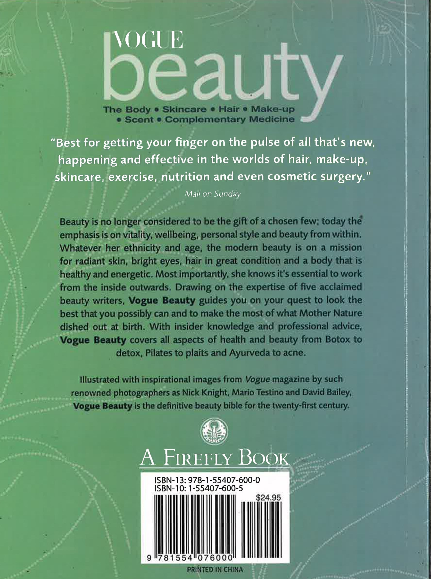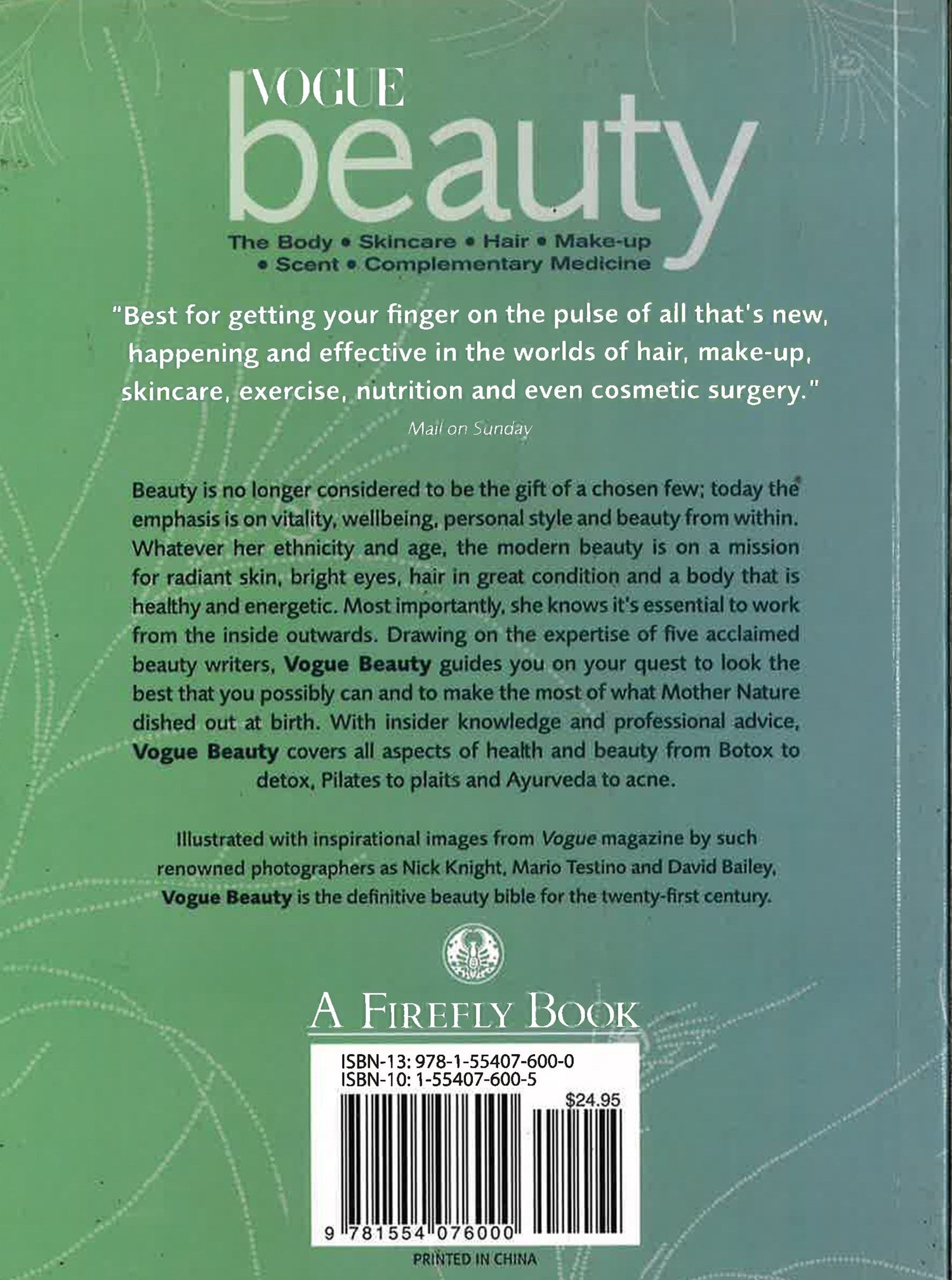 This professional author team provides a comprehensive guide for the woman who wants to make the most of what she has. Beginning with an overview of the latest beauty trends, Vogue Beauty features detailed text, how-to instructions and hundreds of color photographs. Six informative sections cover: The body -- food as fuel, self-image, exercise, caring for problem areas Skin care -- types, essential products, common complaints, skin cancer, dermatology, cosmetic surgery Hair -- types, coloring, style essentials, health Makeup -- foundation, powder, concealer, eye makeup, lipstick, blush, manicure, pedicure Scent -- history of perfumery, choosing a scent, fragrance families, ingredients, making it last Complementary medicines -- everyday medicines, special therapies, holistic disciplines Special sections focus on wrinkles, "cosmeceuticals," lunchtime laser treatments, famous models' secrets, using essential oils and more. Packed with insider knowledge, professional advice and hundreds of photos, women of all ages will find Vogue Beauty useful and entertaining.