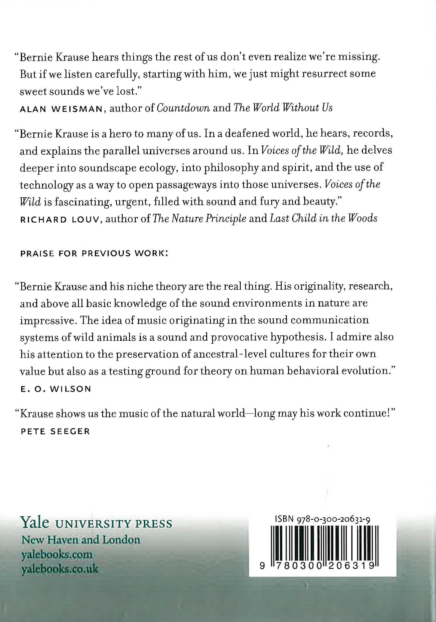 A pioneer in the field of soundscape ecology explores the ways in which the voice of the natural world informs many subjects. Since 1968, Bernie Krause has traveled the world recording the sounds of remote landscapes, endangered habitats, and rare animal species. Through his organization, Wild Sanctuary, he has collected the soundscapes of more than 2,000 different habitat types, marine and terrestrial. With powerful illustrations and compelling stories, Krause provides a manifesto for the appreciation and protection of natural soundscapes. In his previous book, The Great Animal Orchestra, Krause drew readers' attention to what Jane Goodall described as "the harmonies of nature . . . [that are being] one by one by one, snuffed out by human actions." He now explains that the secrets hidden in the natural world's shrinking sonic environment must be preserved, not only for our scientific understanding, but for our cultural heritage and humanity's physical and spiritual welfare. Krause's narrative-supplemented by exclusive access to field recordings from the wild-draws on a compelling range of personal anecdotes, histories, and examples to document his early exploration of this field and to lay the groundwork for future generations.