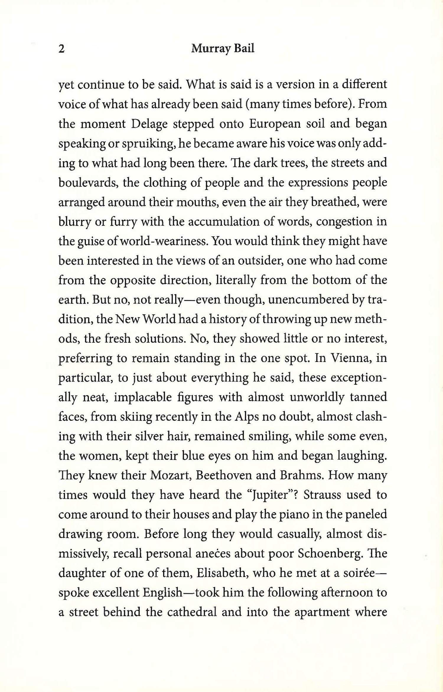Bail's prose sidewinds like a slipstream as Delage's story moves between the glittering society of the von Schalla's Vienna and the rough landscape of Australia. The Voyage is delightfully Joycean--conveying a sensuous physicality and the immediacy emotion, as well as revealing a great basin of interior life.