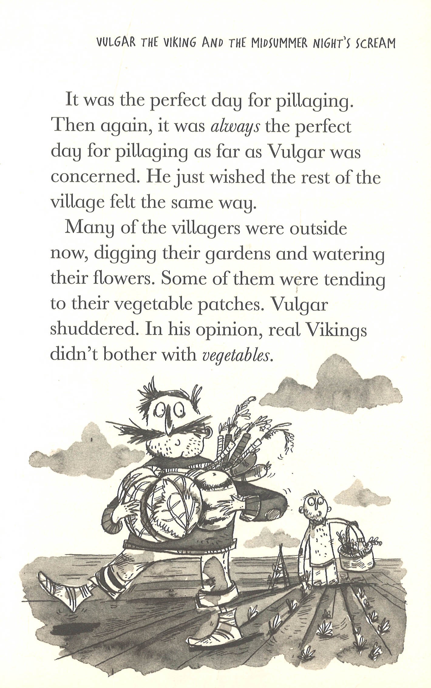 VULGAR THINKS MIDSUMMER NIGHT'S EVE IS THE BEST VIKING FESTIVAL OF ALL! There'll be a massive bonfire, and everyone will sing songs about excellent longboats and enormous battles, then eat and drink until their stomachs explode! So what's with the tiny pile of firewood? And the maypole he's told to dance around? With Freya! NO WAY. Vulgar vows to make this Midsummer's Eve a night Blubber will remember for ever. It's going to be a SCREAM...