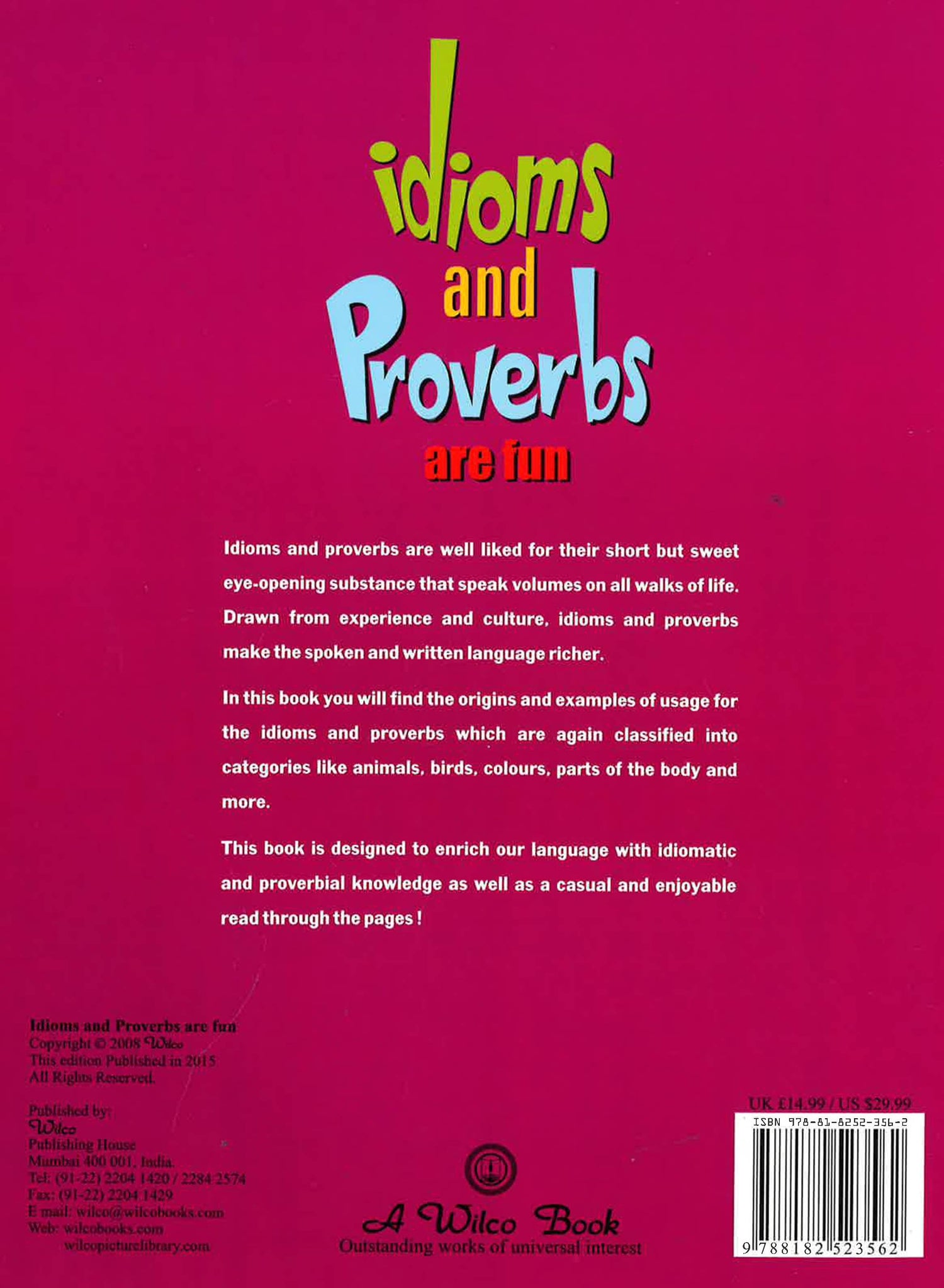 Idioms and Proverbs are well liked for their short but sweet eye-opening substance that speaks volumes on all walks of life. Drawn from experience and culture, idioms and proverbs make the spoken and written language richer. In this book you will find the origins and examples of usage for the idioms and proverbs and these are also classified into categories such as Animals, Birds, Colours, Parts of the body etc. This book is designed to enrich our language with idiomatic and proverbial knowledge as well as a casual and enjoyable read.