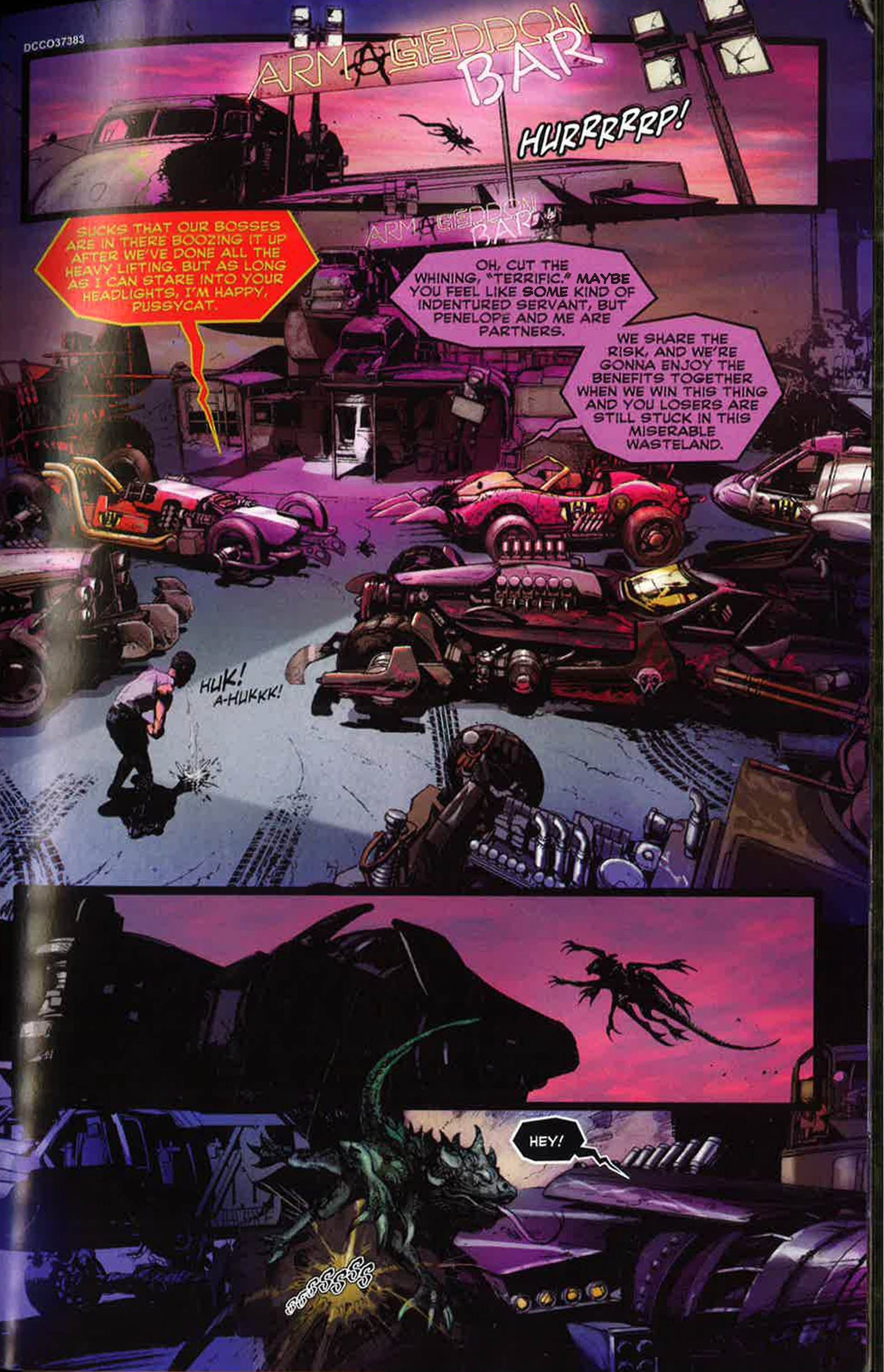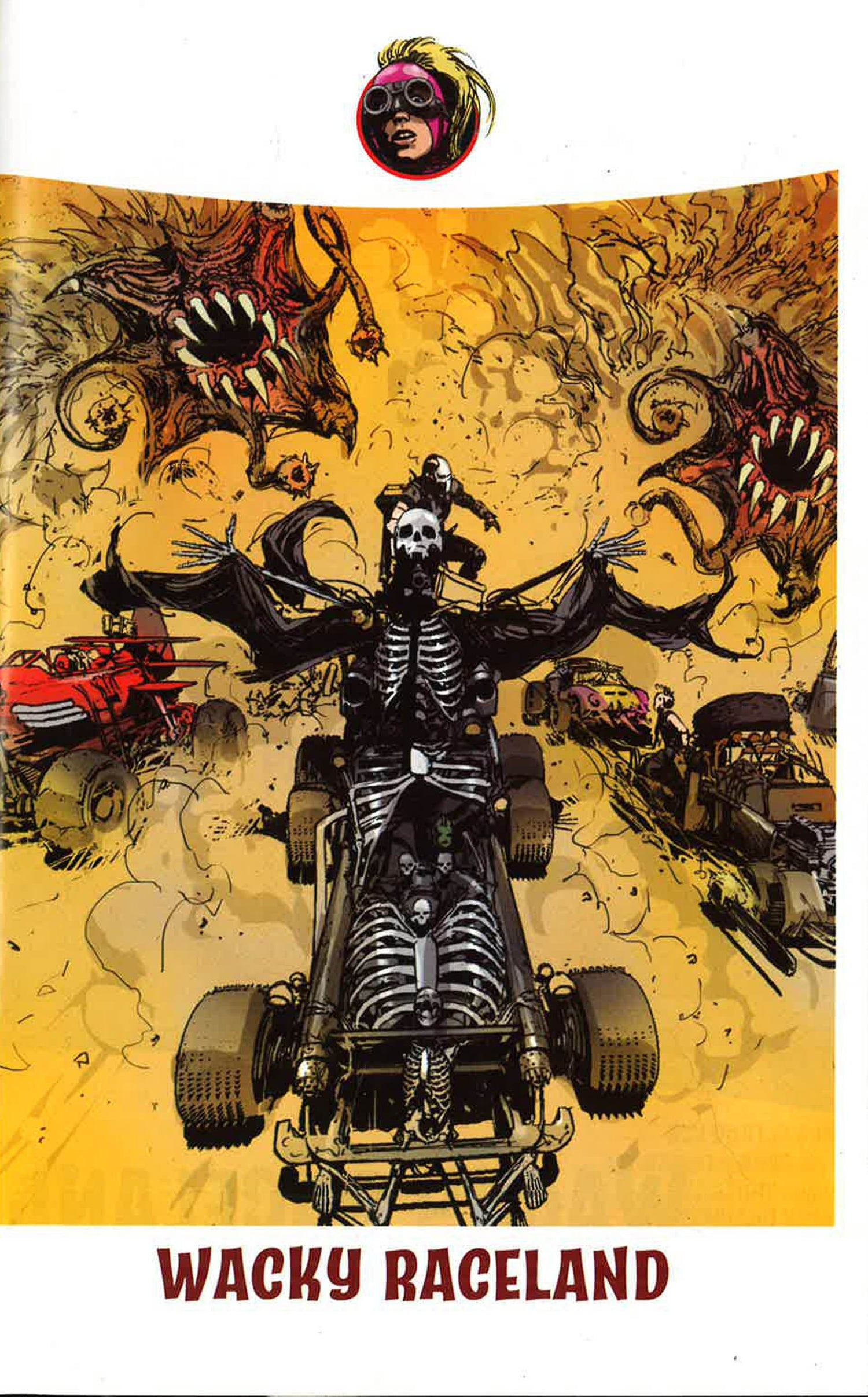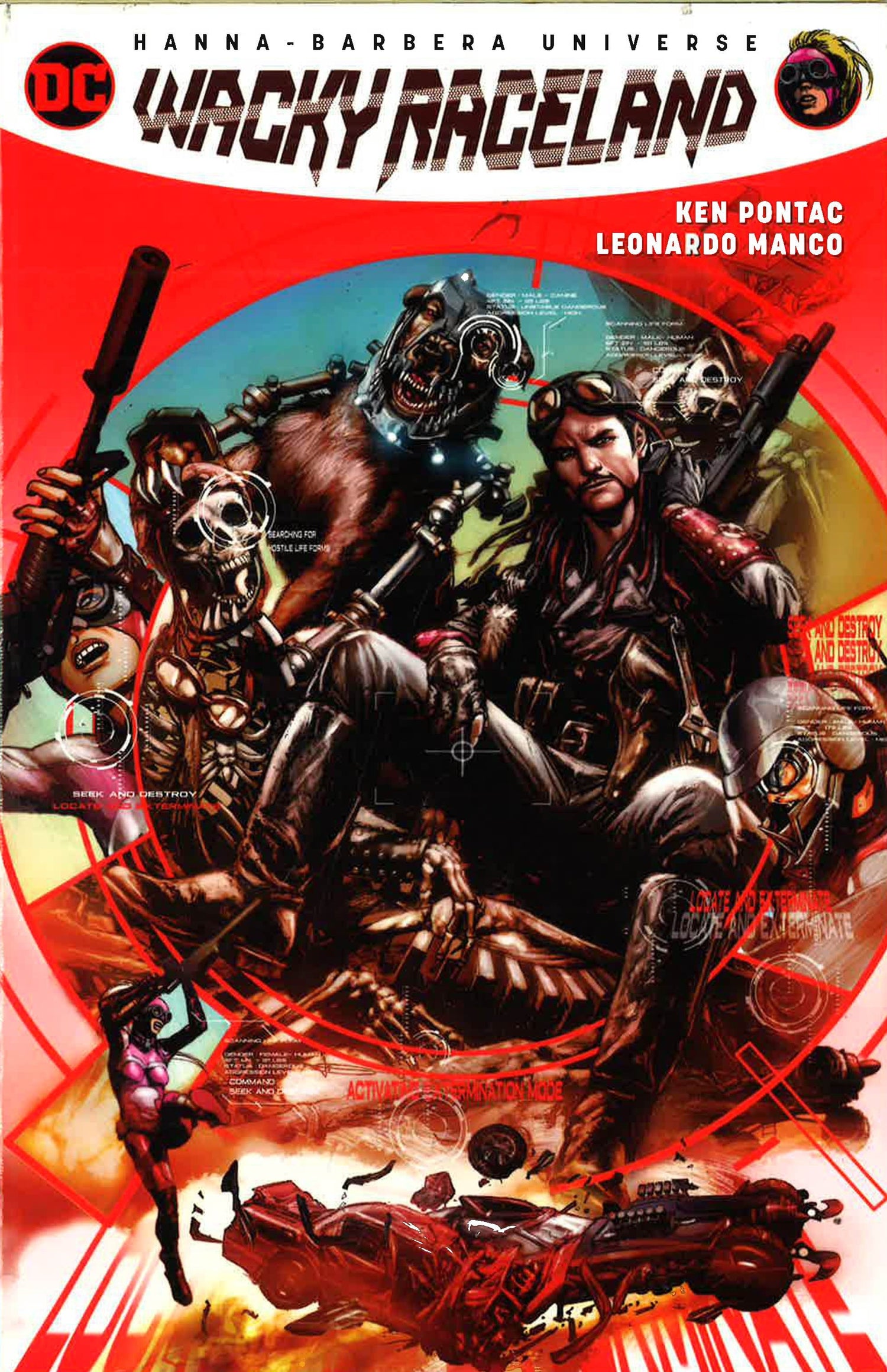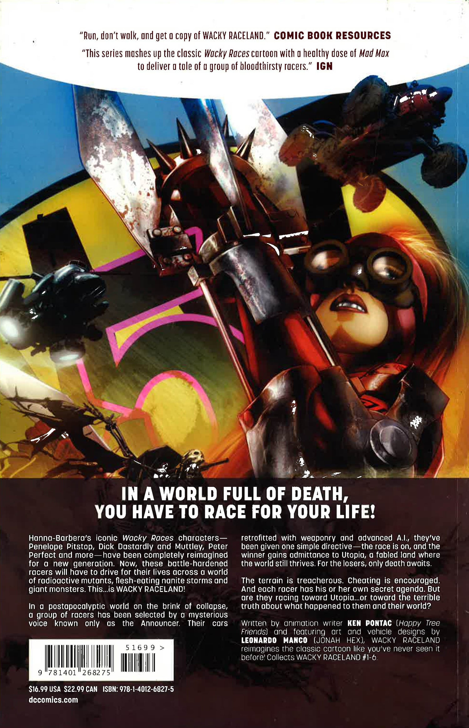 Hanna-Barbera’s iconic Wacky Races characters—Penelope Pitstop, Dick Dastardly and Muttley, Peter Perfect and more—have been completely reimagined for a new generation. Now, these battle-hardened racers will have to drive for their lives across a world of radioactive mutants, flesh-eating nanite storms and giant monsters. This…is WACKY RACELAND!In a postapocalyptic world on the brink of collapse, a group of racers has been selected by a mysterious voice known only as the Announcer. Their cars retrofitted with weaponry and advanced AI, they’ve been given one simple directive—the race is on, and the winner gains admittance to Utopia, a fabled land where the world still thrives. For the losers, only death awaits.The terrain is treacherous. Cheating is encouraged. And each racer has his or her own secret agenda. But are they racing toward Utopia…or toward the terrible truth about what happened to them and their world?Written by animation writer Ken Pontac (Happy Tree Friends) and featuring art by Leonardo Manco (JONAH HEX) and vehicle designs by Mad Max: Fury Road storyboard artist Mark Sexton, WACKY RACELAND reimagines the classic cartoon like you’ve never seen it before! Collects WACKY RACELAND #1-6.