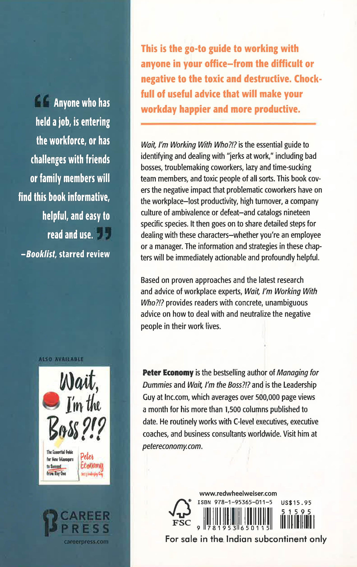 This is the go-to guide on working with anyone in your office—from the difficult or negative to the toxic and destructive—whether they are your manager, a team member, or someone who’s just waiting out the clock. Chock-full of useful advice that will make your workday happier and more productive. Who hasn’t had to deal with a jerk at work? Whether it’s a toxic team member who loves nothing more than to suck the life and excitement out of her colleagues, the difficult coworker who isn’t happy unless the office is filled with mayhem and drama, or a bad boss who causes his employees to constantly dream of telling him to “Take this job and shove it!”, we’ve all had to deal with people on the job we would rather not. Wait, I’m Working with Who?!? is the essential guide to identifying and dealing with jerks at work, including bad bosses, troublemaking coworkers, lazy and time-sucking team members, and toxic people of all sorts. This book covers the negative impact that problematic coworkers have on the workplace—lost productivity, high turnover, a company culture of ambivalence or defeat—and catalogs 16 specific species. It then goes on to share detailed steps for dealing with these characters—whether you’re an employee or a manager. The information and strategies in these chapters will be immediately actionable and profoundly helpful. Based on proven approaches and the latest research and advice of workplace experts, Wait, I’m Working with Who?!? provides readers with concrete, unambiguous advice on how to deal with and neutralize the negative people in their work lives.