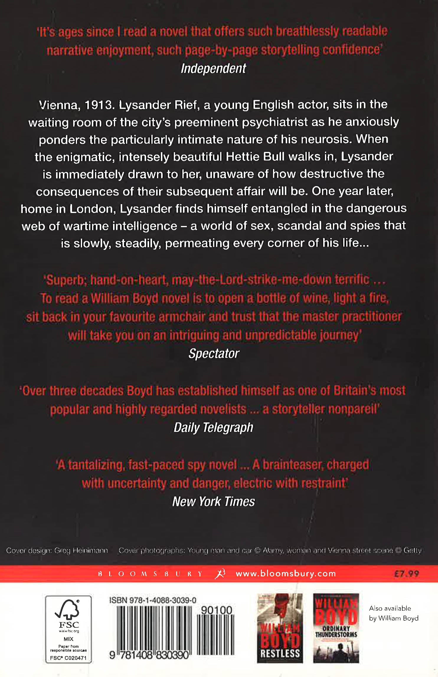 THE SUNDAY TIMES BESTSELLER Vienna, 1913. Lysander Rief, a young English actor, sits in the waiting room of the city's preeminent psychiatrist as he anxiously ponders the particularly intimate nature of his neurosis. When the enigmatic, intensely beautiful Hettie Bull walks in, Lysander is immediately drawn to her, unaware of how destructive the consequences of their subsequent affair will be. One year later, home in London, Lysander finds himself entangled in the dangerous web of wartime intelligence - a world of sex, scandal and spies that is slowly, steadily, permeating every corner of his life...