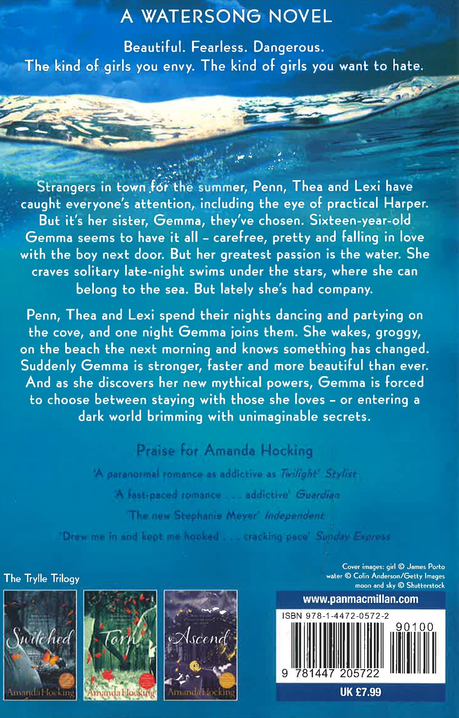 Beautiful. Fearless. Dangerous. They're the kind of girls you envy; the kind of girls you want to hate. Strangers in town for the summer, Penn, Thea, and Lexi have caught everyone's attention, including the eye of practical Harper. But it's her sister, Gemma, they've chosen to be part of their group. Sixteen-year-old Gemma seems to have it all ? carefree, pretty, and falling in love with the boy next door. But her greatest passion has always been the water. She craves late night swims under the stars, where she can be alone yet belong to the sea. Lately she's had company. Penn, Thea, and Lexi spend their nights dancing, singing, and partying on the cove ? and one night Gemma joins them. When she wakes up groggy on the beach the next morning, she knows something has changed. Suddenly Gemma is stronger, faster, and more beautiful than ever. As she uncovers the truth about her new mythical powers, Gemma is forced to choose between staying with those she loves or entering a dark world brimming with unimaginable secrets.