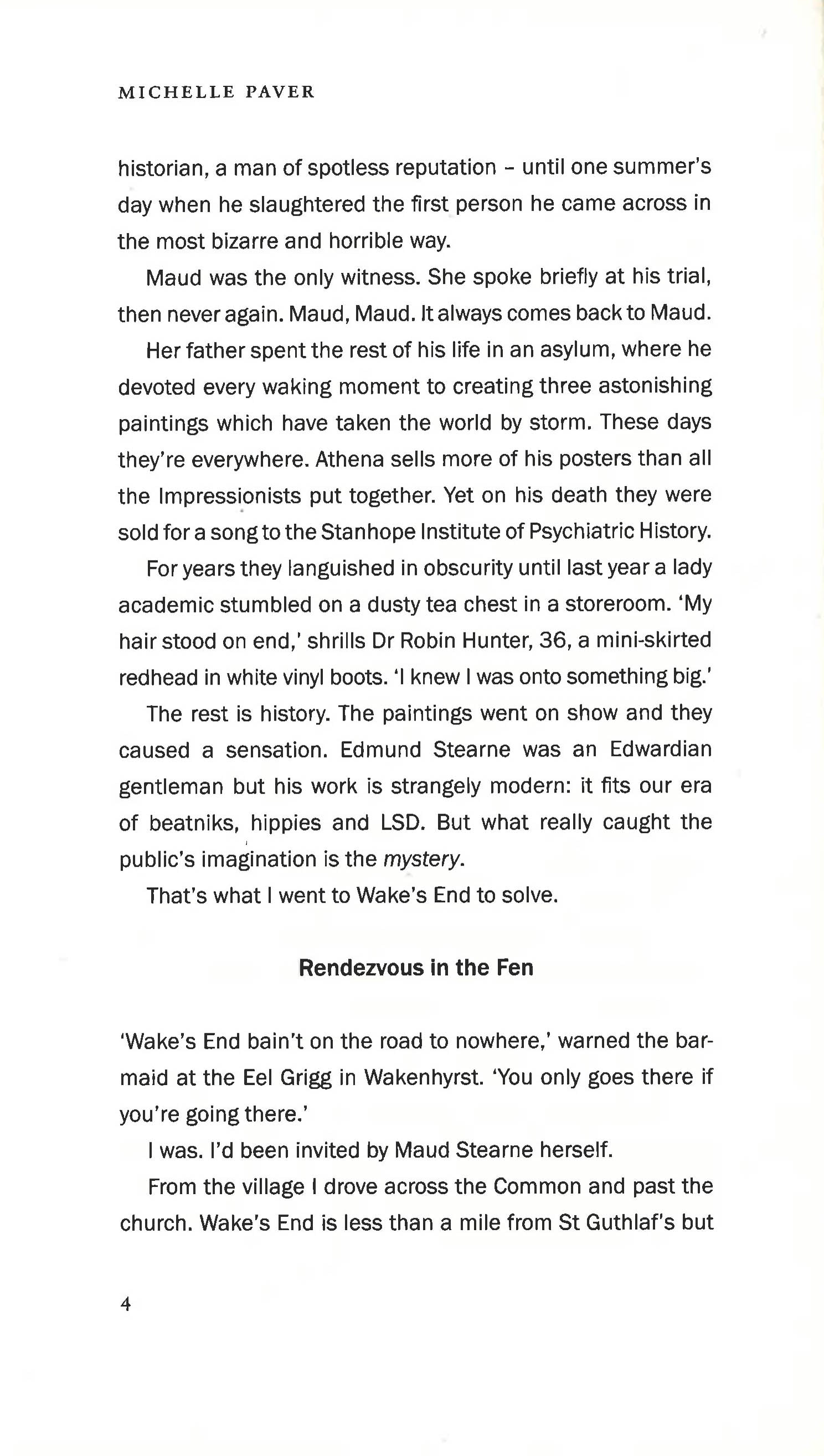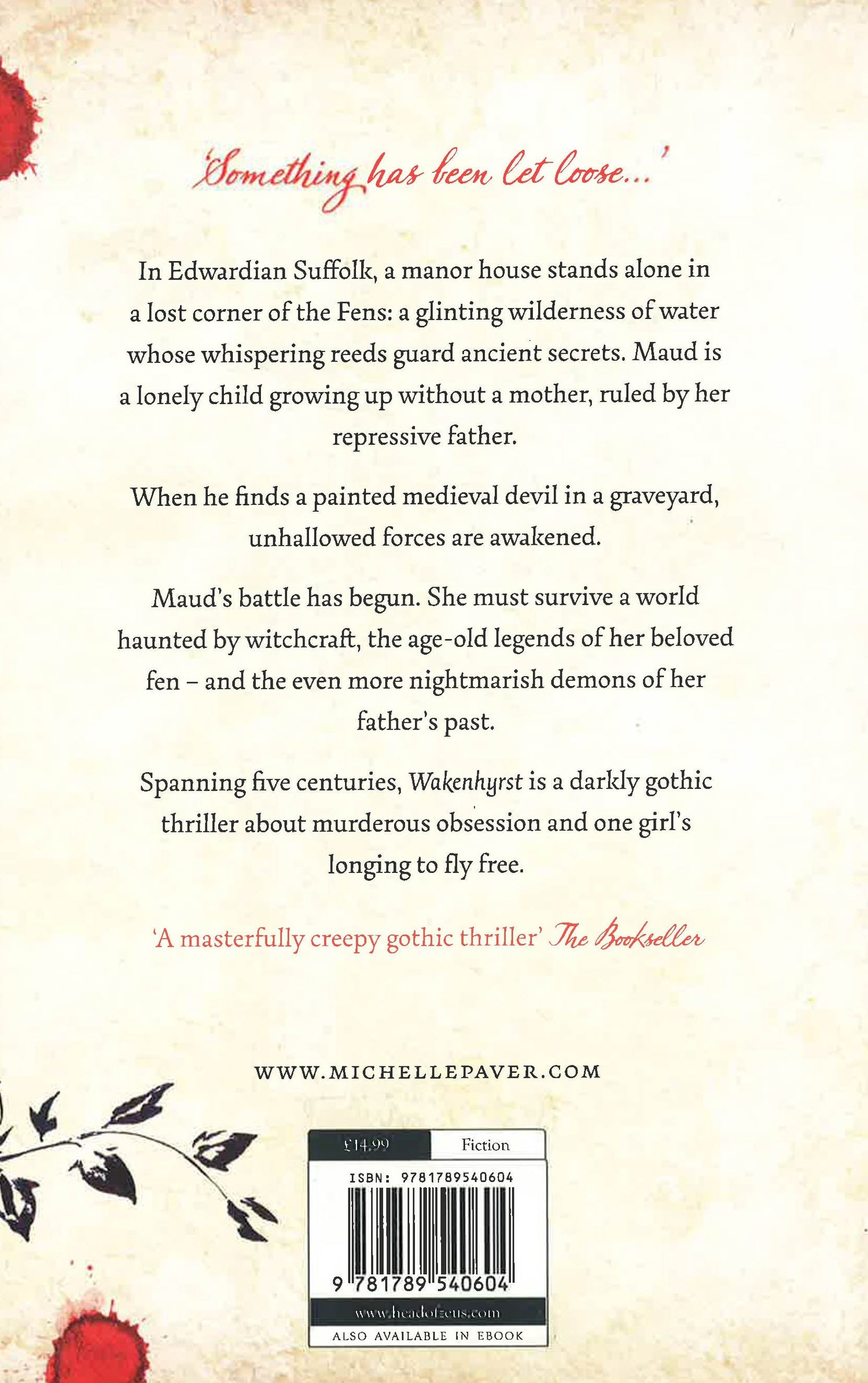 A Times Best Book of 2019. 'Paver is one of Britain's modern greats. This sinister, gothic chiller shows why' BIG ISSUE, Books of the Year 2019. "Something has been let loose..." In Edwardian Suffolk, a manor house stands alone in a lost corner of the Fens: a glinting wilderness of water whose whispering reeds guard ancient secrets. Maud is a lonely child growing up without a mother, ruled by her repressive father. When he finds a painted medieval devil in a graveyard, unhallowed forces are awakened. Maud's battle has begun. She must survive a world haunted by witchcraft, the age-old legends of her beloved fen - and the even more nightmarish demons of her father's past. Spanning five centuries, Wakenhyrst is a darkly gothic thriller about murderous obsession and one girl's longing to fly free by the bestselling author of Dark Matter and Thin Air. Wakenhyrst is an outstanding new piece of story-telling, a tale of mystery and imagination laced with terror. It is a masterwork in the modern gothic tradition that ranges from Mary Shelley and Bram Stoker to Neil Gaiman and Sarah Perry.