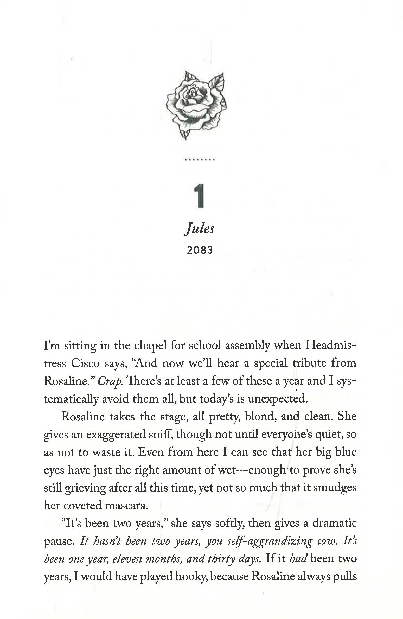 Among them are 18-year-old Juliet and the love of her life, Romeo. But things are far from rosy for Jules. Romeo lies in a coma, and Jules is estranged from her friends and family, dealing with the very real fallout of their wild romance.