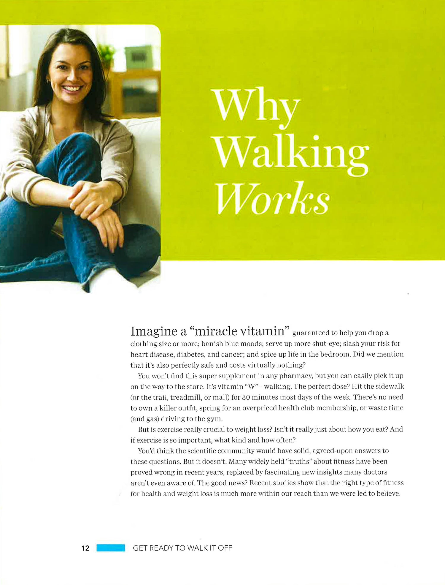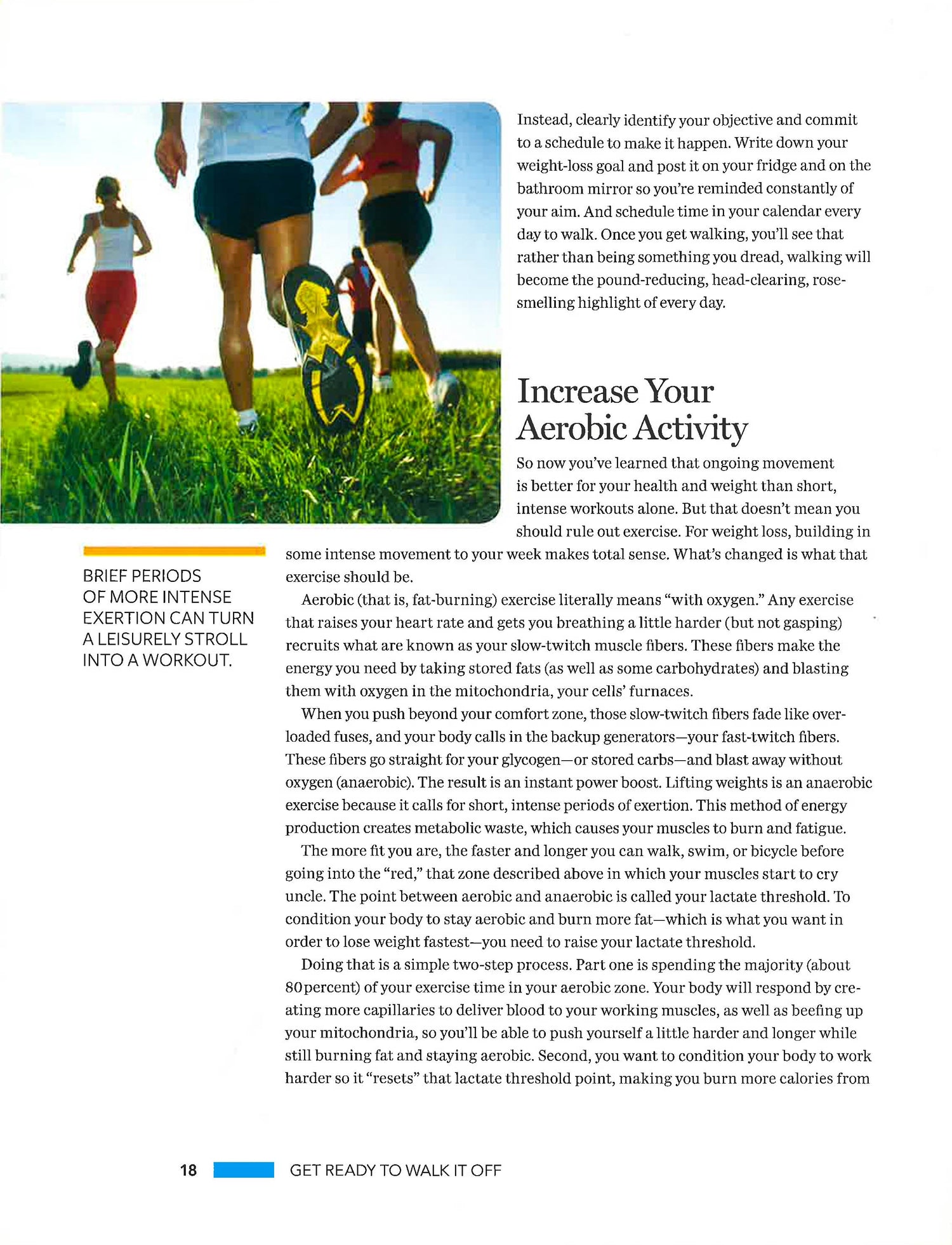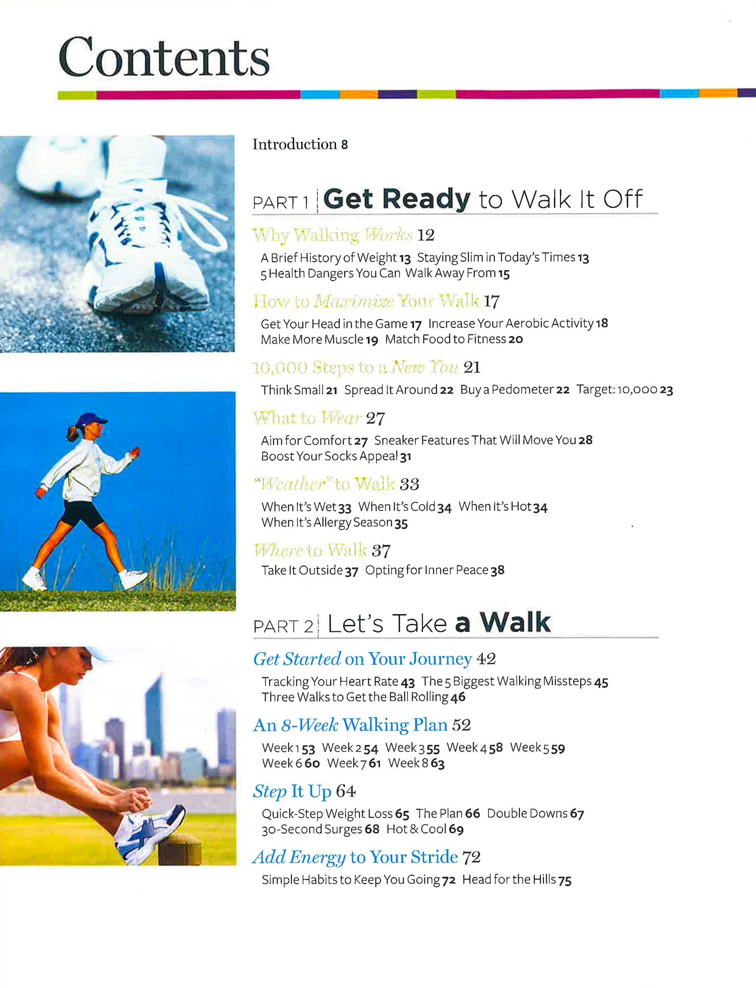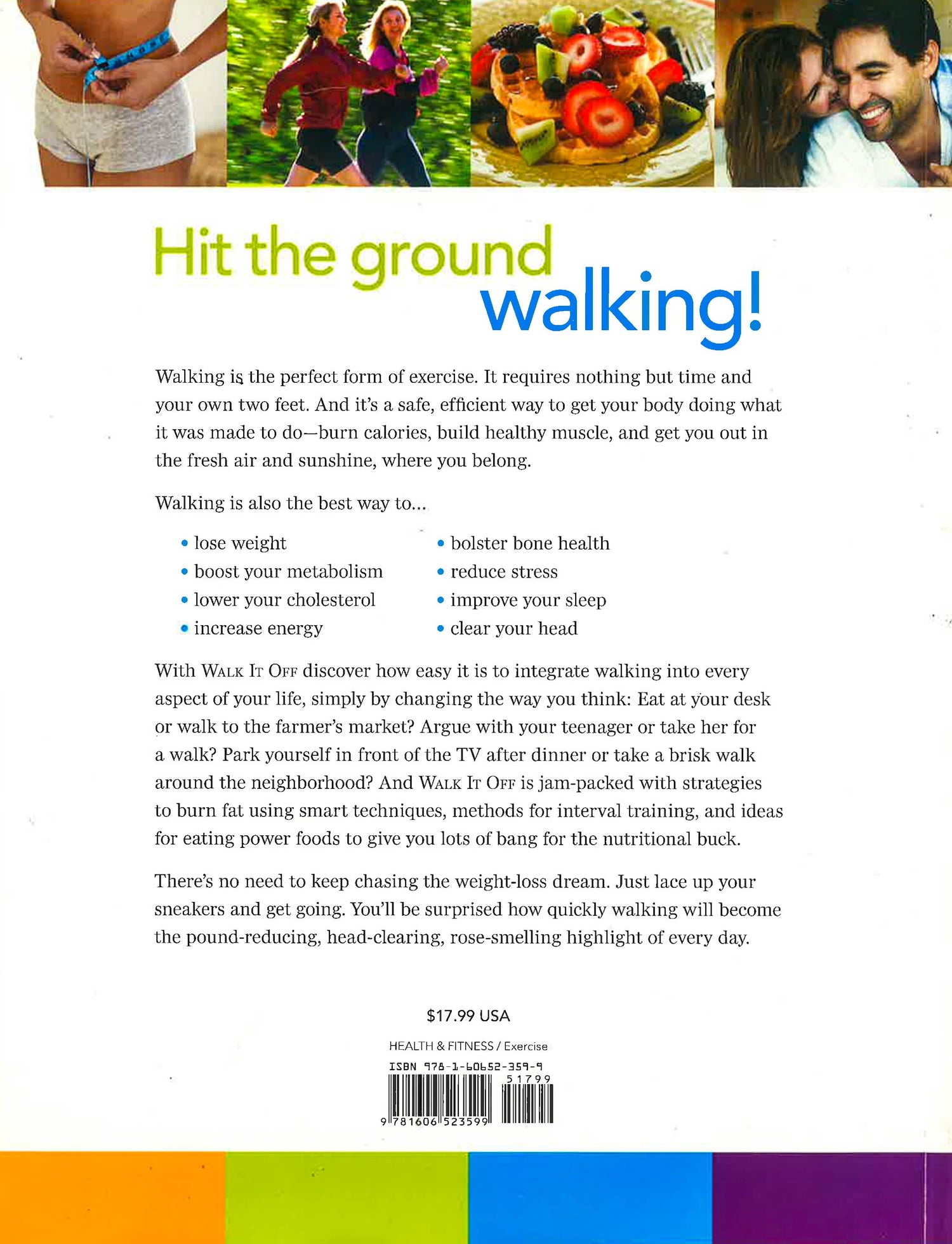 Walking has been called "the most perfect form of exercise," and this book tells you in no uncertain terms why you should hot-foot it out the door and get started on a regular walking program. When done regularly, walking is the best way to get a handle on excess poundage or maintain your ideal weight. In "Walk It Off," five chapters contain topics that range from the more technical (the mechanics of walking, strength training, and the like) to the practical (what to wear on walks and walking on different types of surfaces, to cite two examples) to the health-centered (eating to be your best, the 25 foods most beneficial to walkers, recipes, and more). In addition, the book is packed with tips on safety when walking, "weather walking," music play lists for different walks, and other considerations for people who decide to take to the sidewalk, footpath, or hiking trail and learn what a difference walking can make-both in their physical form and in their lives.