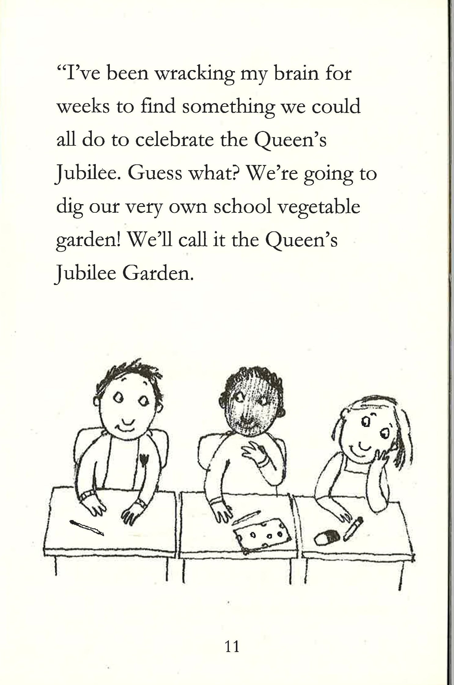 garden to celebrate the Queen's Jubilee. Then he starts to dig up some