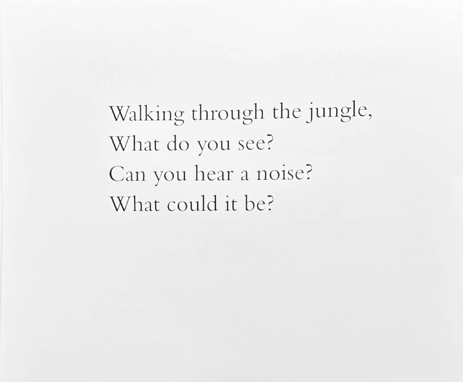 A small child walks, creeps, runs, leaps, swings and, finally, wades through the jungle - hearing animal noises as he goes - in this traditional, everybody-join-in rhyme.