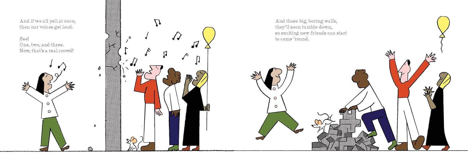 Walls of all sorts: social walls, border walls, political walls, emotional walls, big walls, old walls, and small walls. Speaking to today's critical political issues, this playful and encouraging story about breaking down barriers helps children learn about inclusivity, equality, openness, and kindness while also reminding grown-ups of the same values. Walls is a timely and timeless story, told with bold and colorful illustrations.