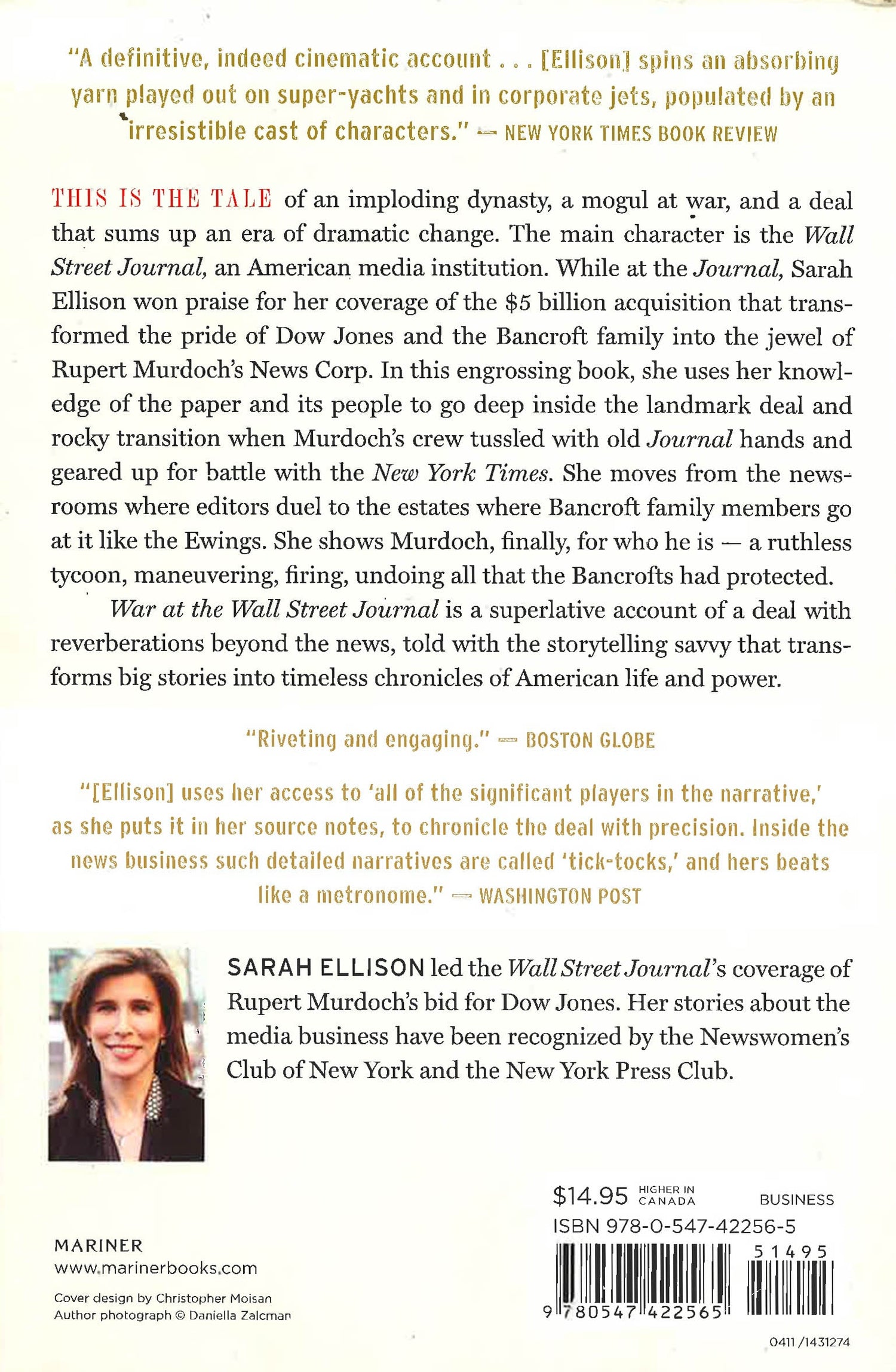 While working at the Wall Street Journal, Sarah Ellison won praise for covering the $5 billion acquisition that transformed the pride of Dow Jones and the estimable but eccentric Bancroft family into the jewel of Rupert Murdoch's kingdom. Here she expands that story, using her knowledge of the paper and its people to go deep inside the landmark transaction, as no outsider has or can, and also far beyond it, into the rocky transition when Murdoch's crew tussled with old Journal hands and geared up for battle with the New York Times. With access to all the players, Ellison moves from newsrooms to estates and shows Murdoch, finally, for who he is - maneuvering, firing, undoing all that the Bancrofts had protected. Her superlative account transforms news of the deal into a timeless chronicle of American life and power.