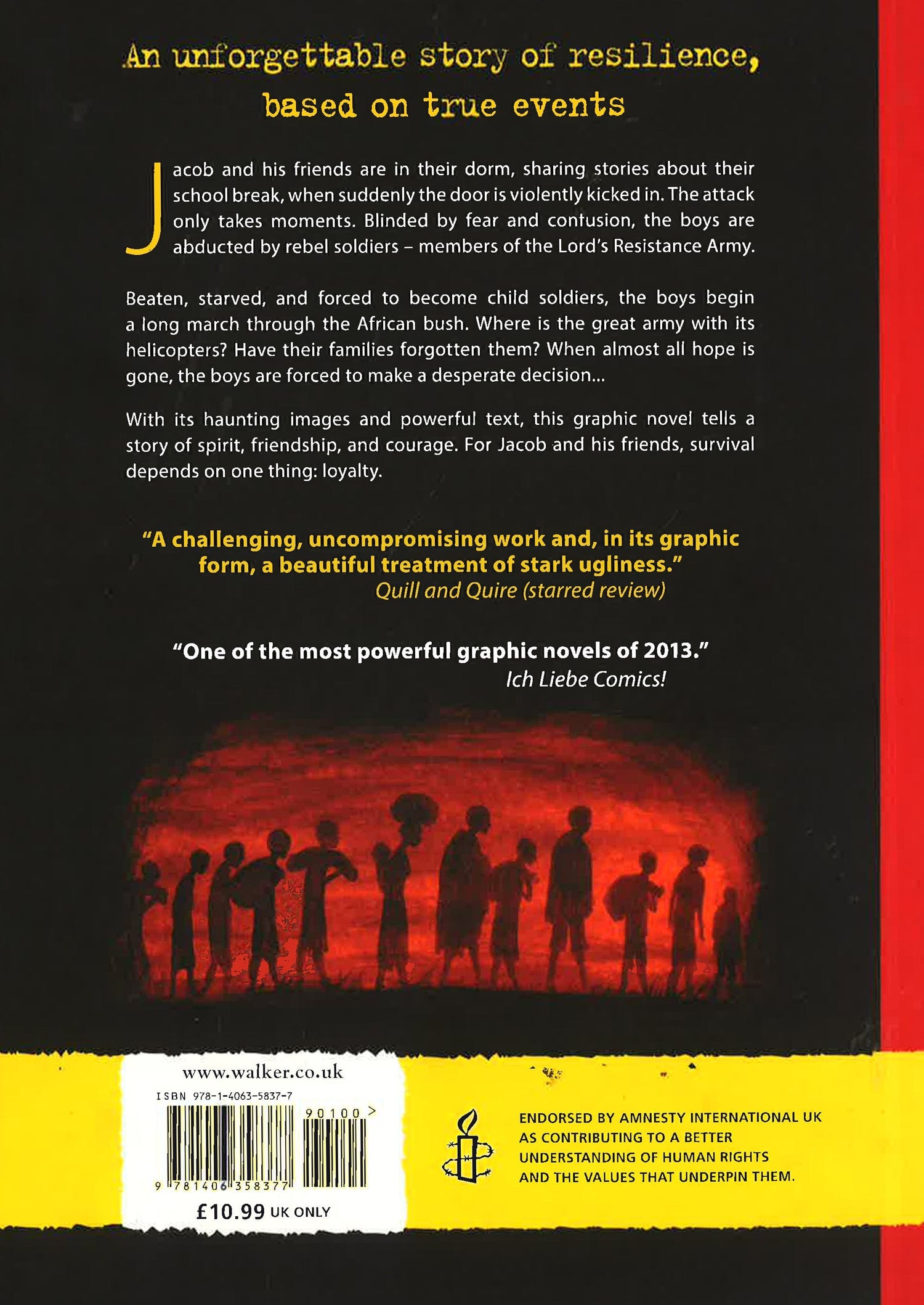 A powerful and unforgettable graphic novel, based on true events, about the capture of Ugandan schoolchildren forced to serve as child soldiers in the Lord's Resistance Army. Based on the award-winning novel War Brothers by Sharon E. McKay, with striking illustrations by animator and storyboard artist Daniel Lafrance, this graphic novel captures the very essence of life as a child soldier. Readers will never forget Jacob's experiences as he struggles to survive, unsure of who he can trust, afraid of succumbing to madness and, above all, desperate to get to freedom. A 2014 Eisner Award nominee.A powerful and unforgettable graphic novel, based on true events, about the capture of Ugandan schoolchildren forced to serve as child soldiers in the Lord's Resistance Army. Fourteen-year-old Jacob and his friends are sharing stories about their school break when the door to their dorm is violently kicked in. Blinded by fear and confusion, the boys are abducted from their school in the middle of the night, marched into the jungle and forced to become child soldiers in the Lord's Resistance Army - it's kill or be killed.