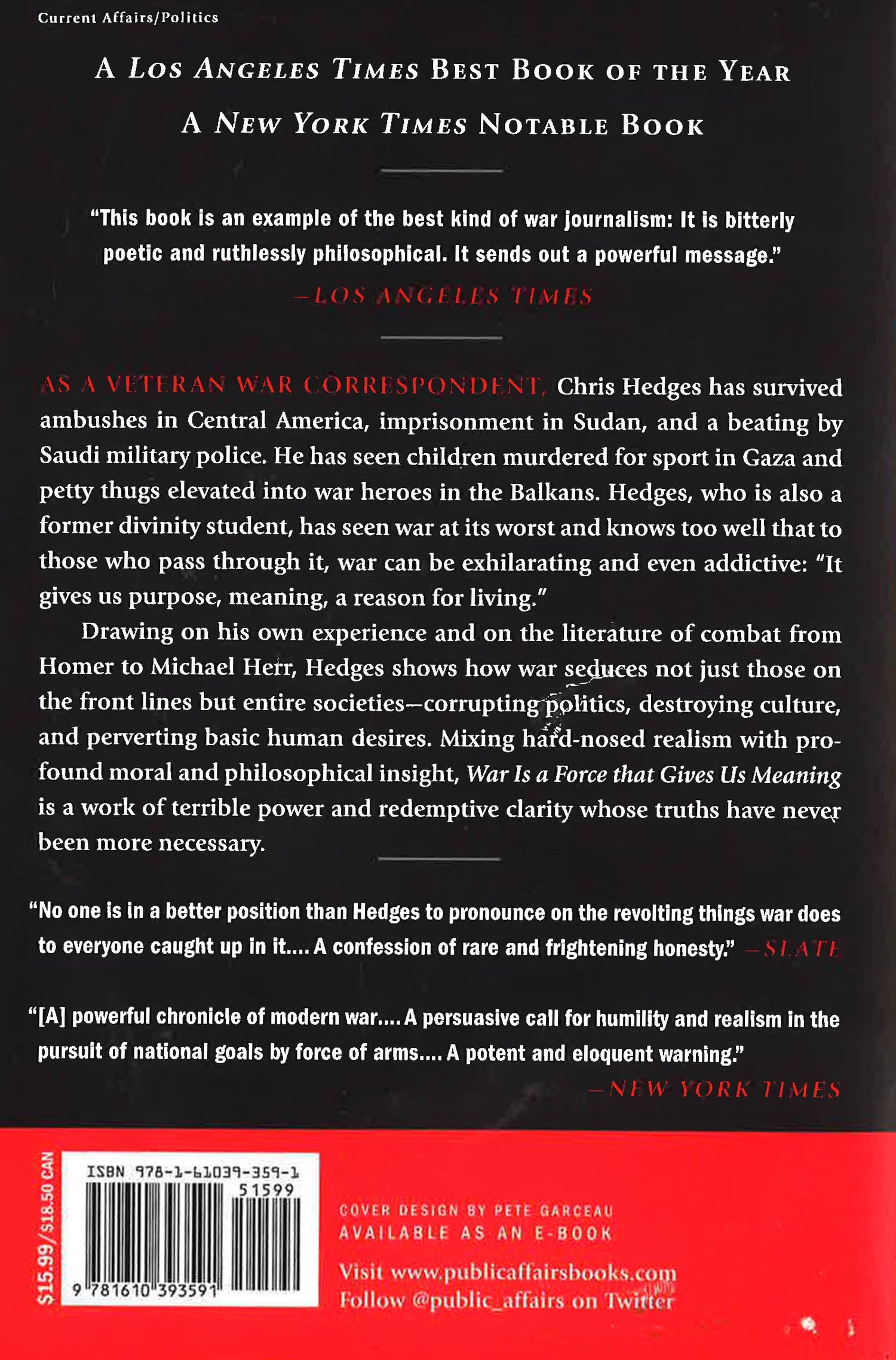 Drawing on the literature of combat, from Homer and Shakespeare to Erich Maria Remarque and Michael Herr, Hedges shows how human beings are conditioned to embrace what he calls "the myth of war" - the idea that combat is noble, selfless, and glorious. And yet if human history is any guide, nations and imperiums have stumbled and even fallen when they believed the myths peddled about war and about themselves. The reality of war, which Hedges knows first-hand, is about the destruction of culture, the perversion of human desire, and the embrace, ultimately, of death over life.