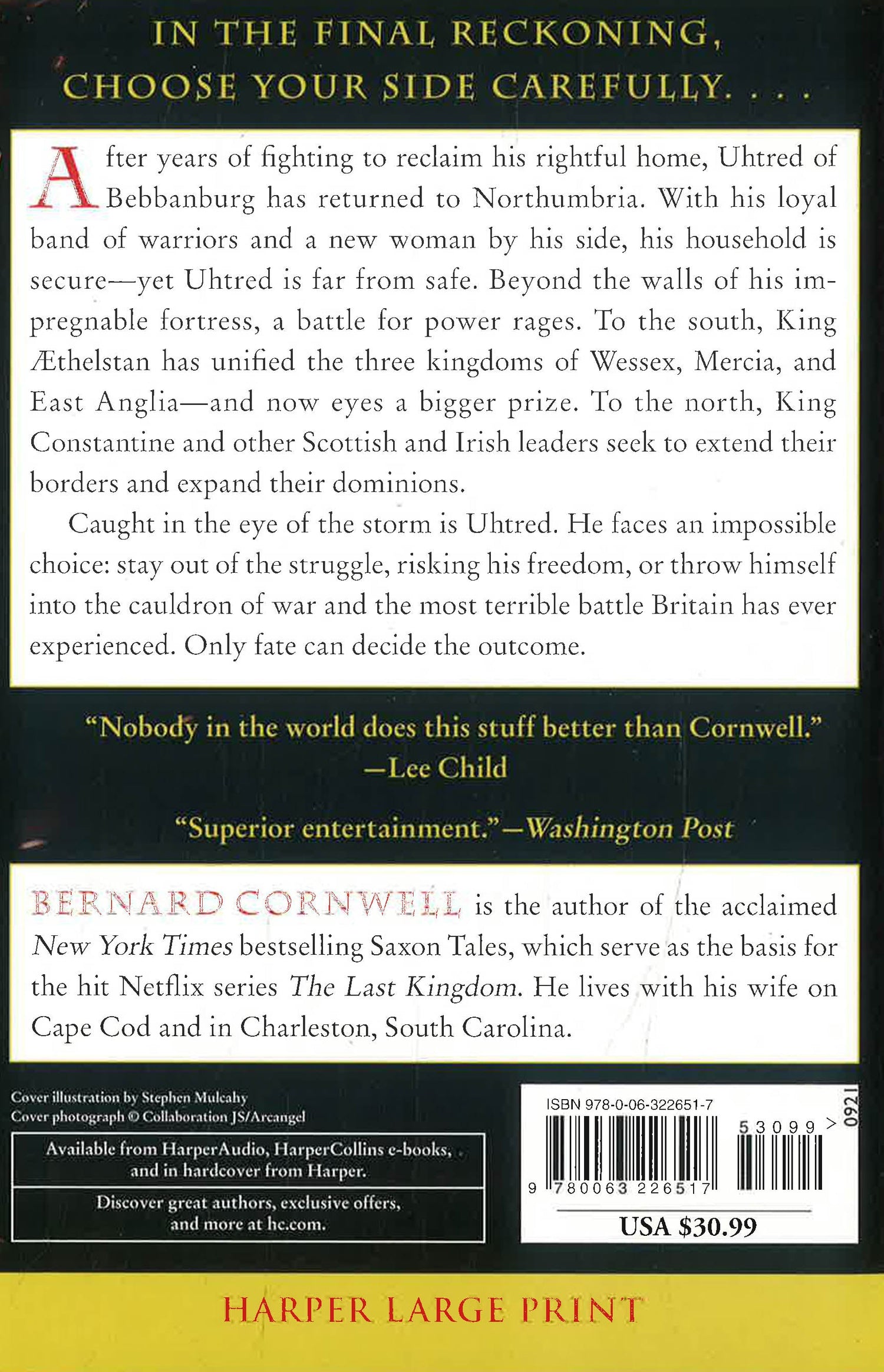 England is under attack. Chaos reigns. Northumbria, the last kingdom, is threatened by armies from all sides, by land and sea – and only one man stands in their way. Torn between loyalty and sworn oaths, the warrior king Lord Uhtred of Bebbanburg faces his greatest ever battle – and prepares for his ultimate fate…