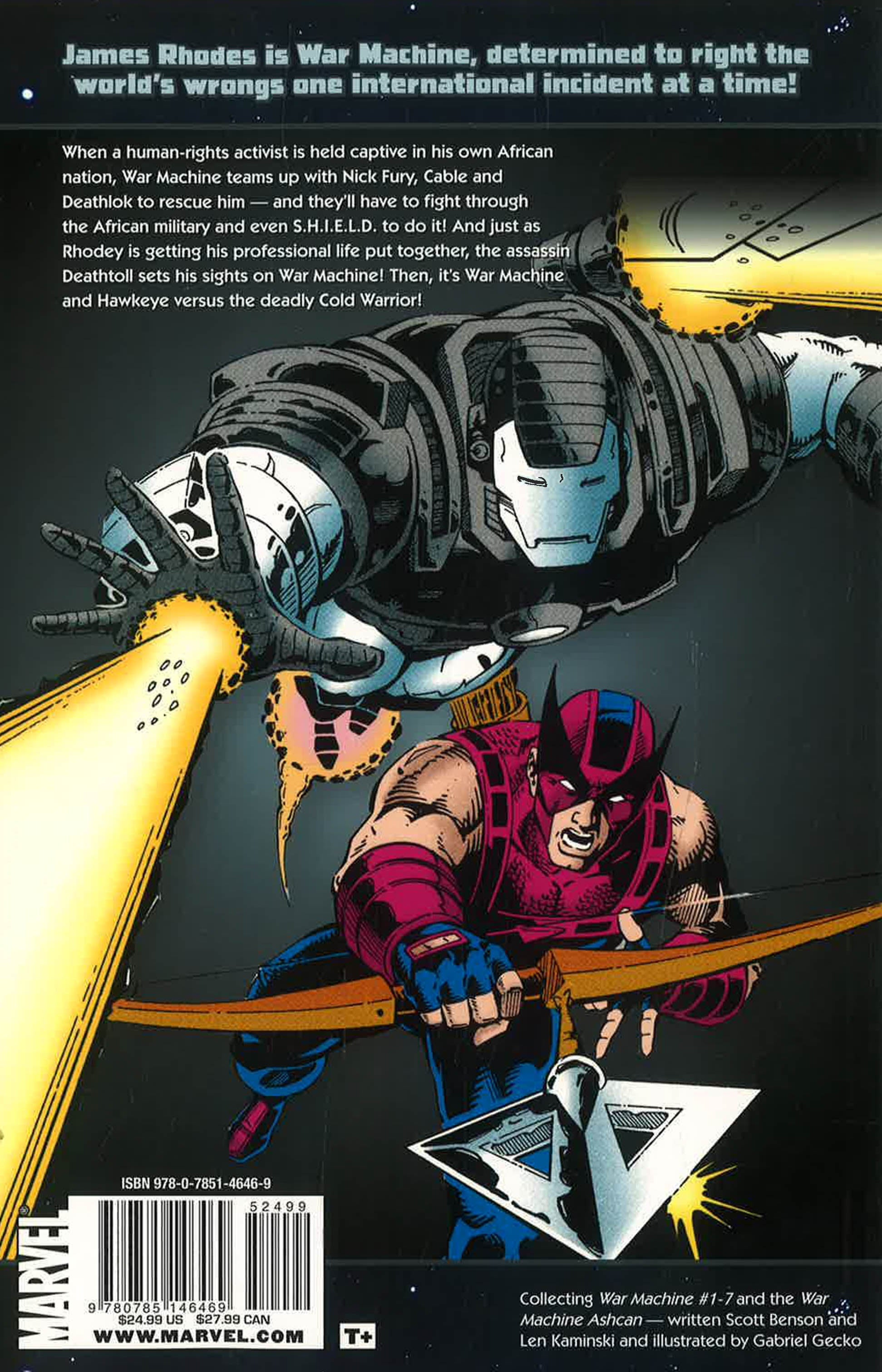 James Rhodes is War Machine, determined to right the world's wrongs one international incident at a time! When a human-rights activist is held captive in his own African nation, War Machine teams up with Nick Fury, Cable and Deathlok to rescue him--and they'll have to fight through the African military and even S.H.I.E.L.D. to do it! And just as Rhodey is getting his professional life put together, the assassin Deathtoll sets his sights on War Machine! Then, it's War Machine and Hawkeye versus the deadly Cold Warrior!