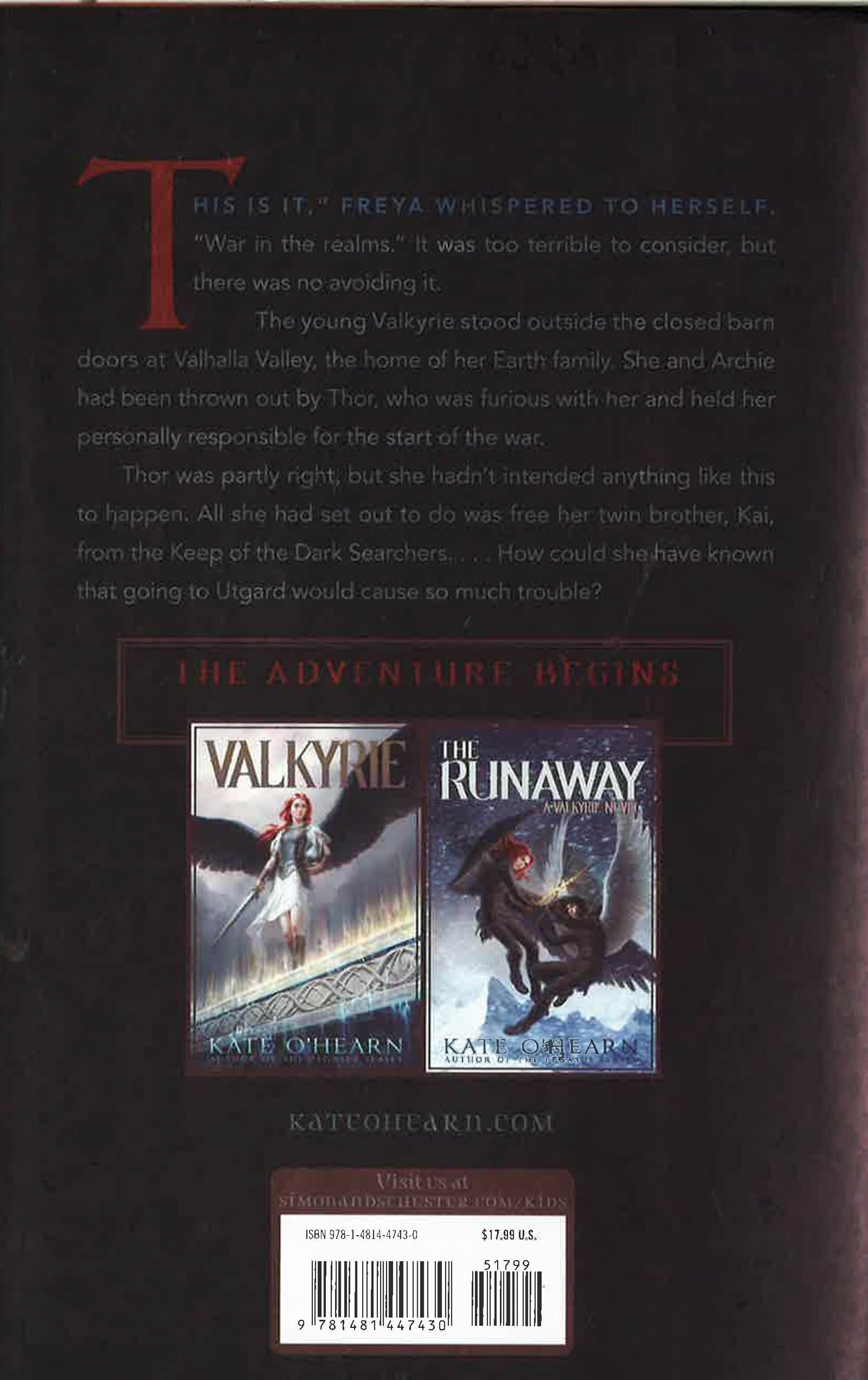 Freya and the Valkyries must stop a war before two worlds are destroyed in this third book of an exciting series that School Library Journal described as perfect for "those looking for Rick Riordan read-alikes." In the world of Asgard, living among Odin, Thor, and Loki, are the Valkyries of legend. They are Norse goddesses who reap the fallen souls from human battlefields and have the power to cause death with just one touch. At the end of The Runaway, Freya and the Valkyries were about to leave the human world when they learned that the Frost Giants, Fire Giants, and Dark Searchers had united to declare war on the Realms. Bitfrost, the legendary rainbow bridge linking the human world to Asgard, had been closed. With their only entry back to Asgard barred, how can the Valkyries get back to fight to protect their homeland? Loki claims he knows a secret route but can they trust him? And even if they found a way--is there anything they can do to stop the war? As the War of the Realms spills over into Earth, Freya and the Valkyries must find a way to save not just the Norse world but the human world as well. With everything at stake, can Freya become the Hero she was destined to be?