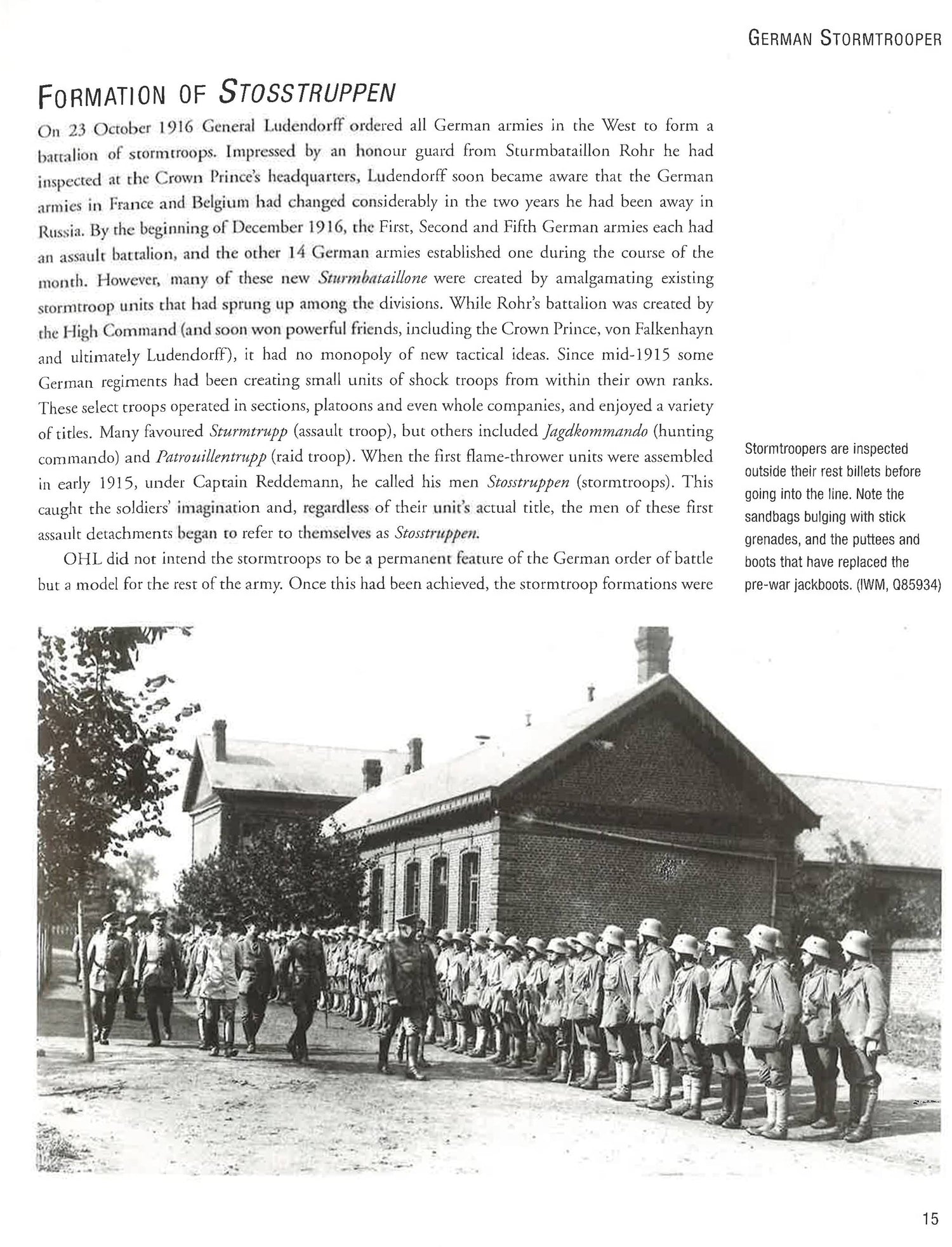 This book is a collection of essays by well known First World War contributors such as Dr Stephen Bull, Ian Drury, Thomas A. Hoff, Martin Pegler and Ian Sumner. World War I stands as a watershed in the evolution of modern warfare, with the development of sophisticated trench systems forming a battlefield over 400 miles long; innovations in weaponry and equipment; and the introduction of tanks in battle. Without the ordinary soldier, however, there could have been no war: The Great War was very much a conflict of infantrymen - Tommies, Stormtrooper, Poilus and Doughboys.