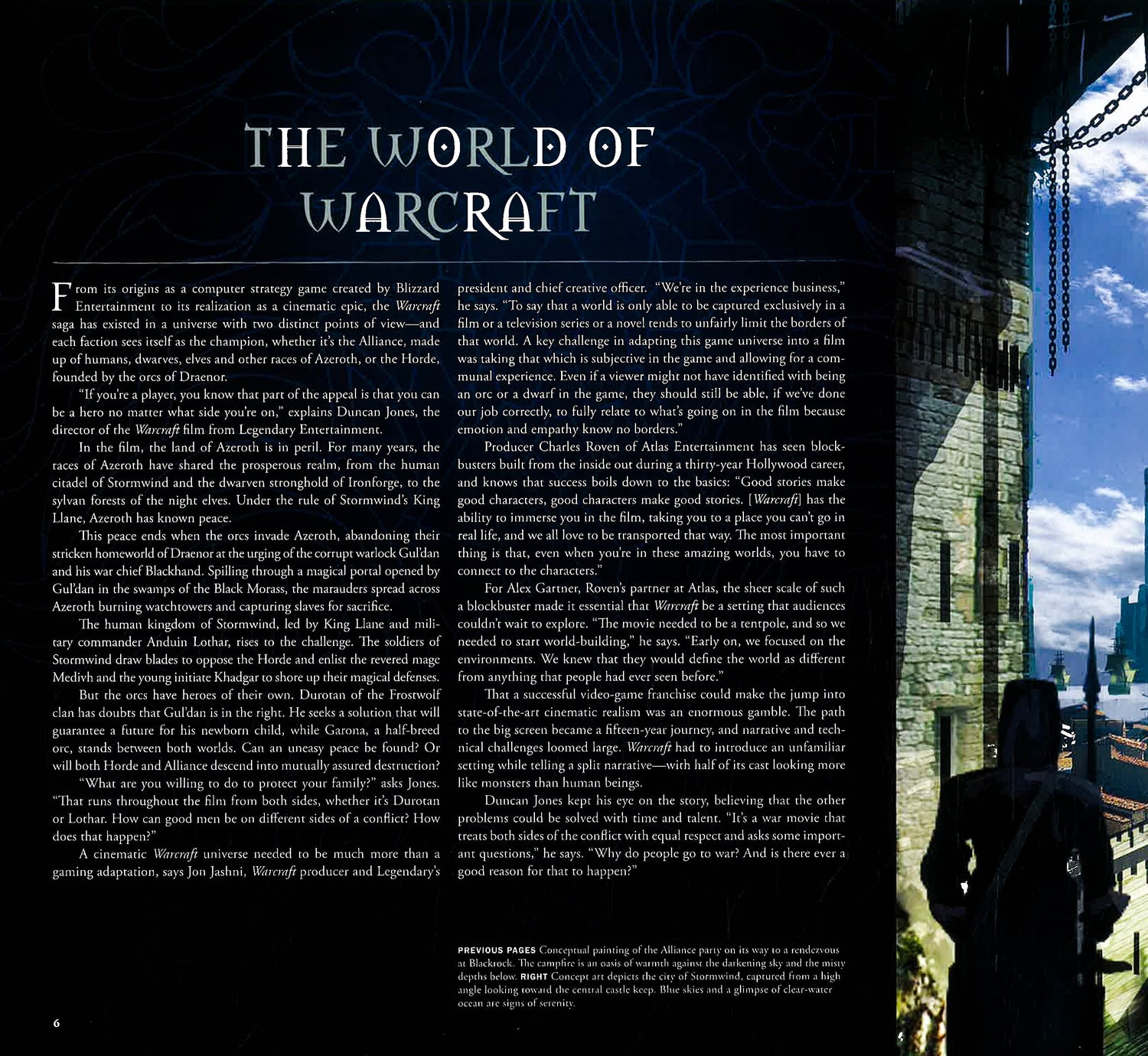 This enthralling look at the World of Warcraft film gives fans an immersive, behind-the-scenes account of the making of the most anticipated movie of 2016. Utilizing unit photography; concept, set, and production art: and detailed breakdowns of the costumes and weapons of the Alliance and Horde, this visual marvel provides the ultimate in-depth experience behind the creation of Azeroth and legendary characters Durotan and Lothar.