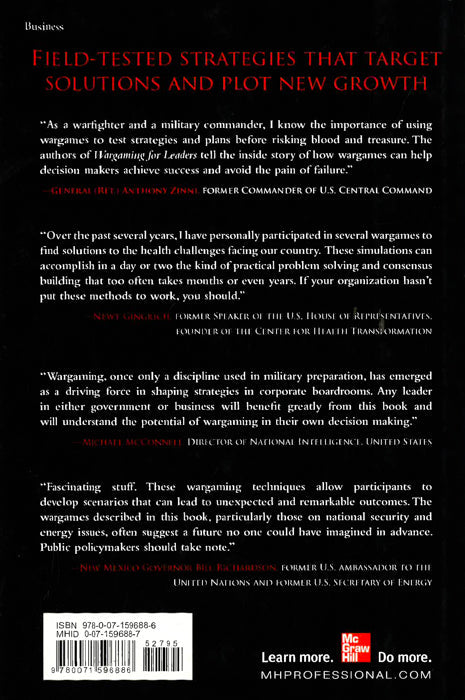 Wargaming for Leaders provides a methodology to get at the issues that one leader, no matter how visionary, cannot grasp on his or her own. How? By bringing together the real experts on the topic at hand to wage "cognitive warfare." Through tapping the collective wisdom surrounding an issue, experts can experience the future in a risk-free environment and find answers to questions that had not been on their radar--often with unexpected and startling results.