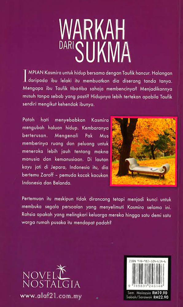 IMPIAN Kasmira untuk hidup bersama dengan Taufik hancur. Halangan daripada ibu lelaki itu membuatkan dia diserang tanda tanya. Mengapa ibu Taufik tiba-tiba sahaja membencinya? Menjadikannya musuh tanpa sebab yang pasti? Hidupnya lebih tertekan apabila Taufik sendiri mengikut kehendak ibunya. Patah hati menyebabkan Kasmira mengubah haluan hidup. Kembaranya berterusan. Mengenali Pak Mus memberinya ruang dan peluang untuk meneroka lebih jauh tentang makna manusia dan kemanusiaan. Di lautan kayu jati di Jepara, Indonesia itu, dia bertemu Zaroff – pemuda kacak kacukan Indonesia dan Belanda. Pertemuan itu meskipun tidak dirancang tetapi menjadi kunci untuk membuka segala persoalan yang menyelimuti Kasmira selama ini. Rahsia apakah yang melingkari keluarga mereka hingga satu demi satu warga rumah pusaka itu mendapat padah?