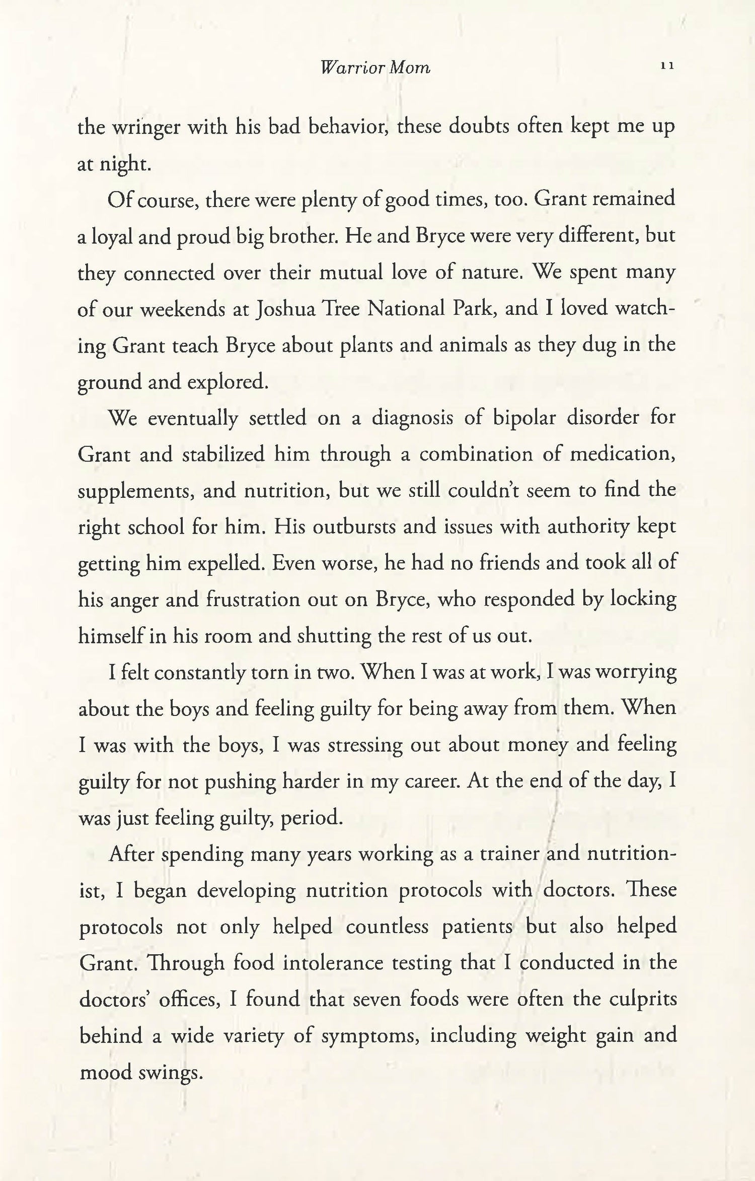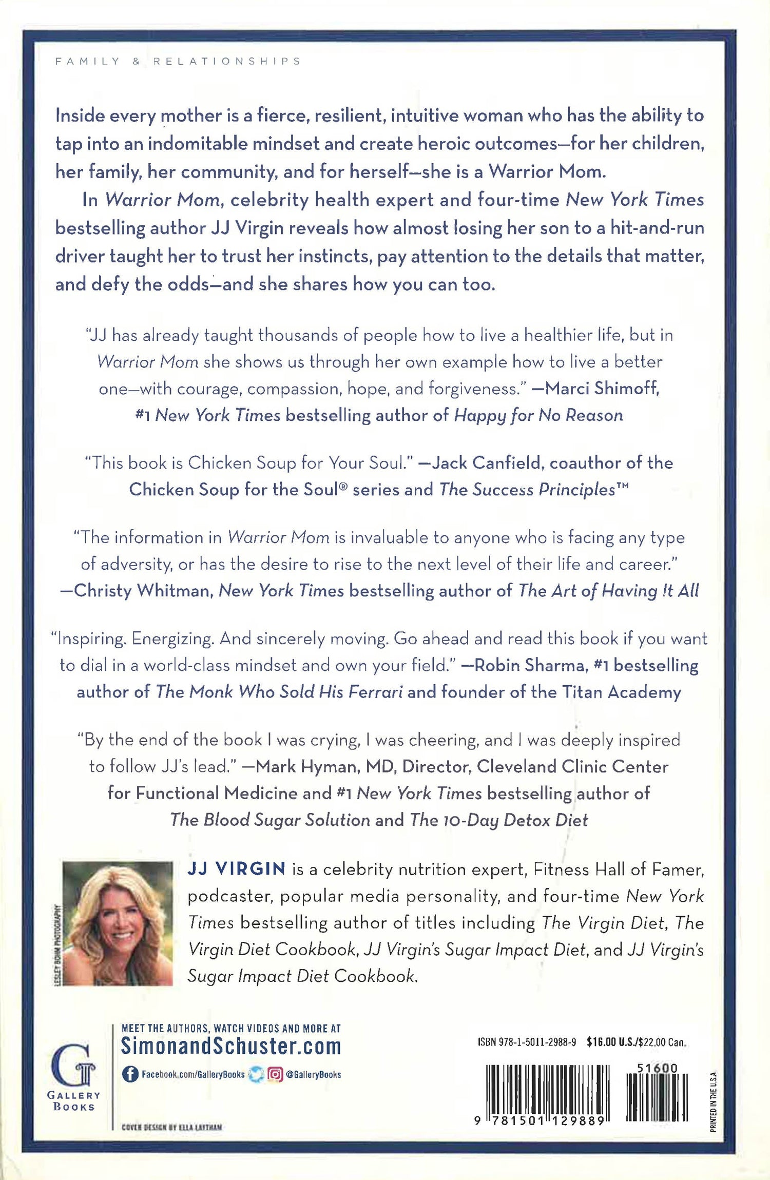 Inside every mother is a fierce, resilient, intuitive woman who has the ability to tap into an indomitable mindset and create heroic outcomes--for her children, her family, her community and for herself--she is a Warrior Mom. In Warrior Mom, (previously published as Miracle Mindset), celebrity health expert and four-time New York Times bestselling author, JJ Virgin reveals how one life-altering event taught her to trust her instincts, pay attention to the details that matter and defy the odds--and she shares how you can too. In 2012, JJ Virgin was in a hospital room next to her sixteen-year-old son who was struck by a hit-and-run driver and left for dead. She was told by doctors that he wouldn't last through the night and to let him go. With every reason to give up, JJ chose instead to invest her energy into the hope that her son would not just survive, but thrive. In Warrior Mom, she shares the lessons that gave her the courage to overcome the worst moment of her life. During this difficult time, she learned valuable personal lessons that helped her rebuild her life and find success and purpose in herself, her work, and teach her sons and community how to face their own obstacles and trials. Lessons like "Don't Wish It Were Easier, Make Yourself Stronger" and "Your Limitations Will Become Your Life" will lead you to your own personal power and purpose, even when the deck seems stacked against you. With true stories from her life, her clients, and other well-known thought leaders, she can help you transform your mindset and your daily habits to endure the difficult battles that life sends your way. Insightful, personal, and completely relatable, this book proves that miracles are possible when you show up, remain positive, and do the work.