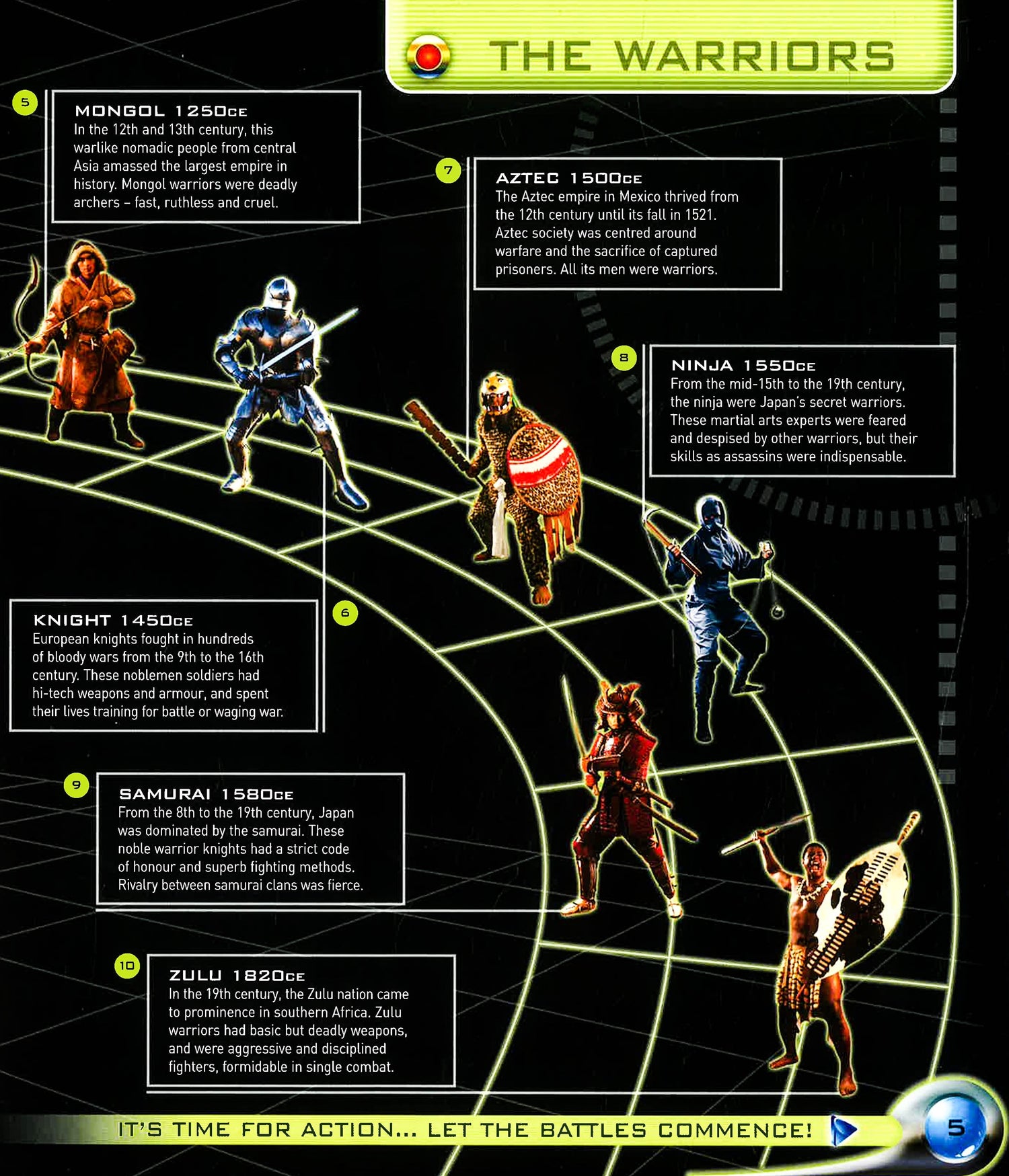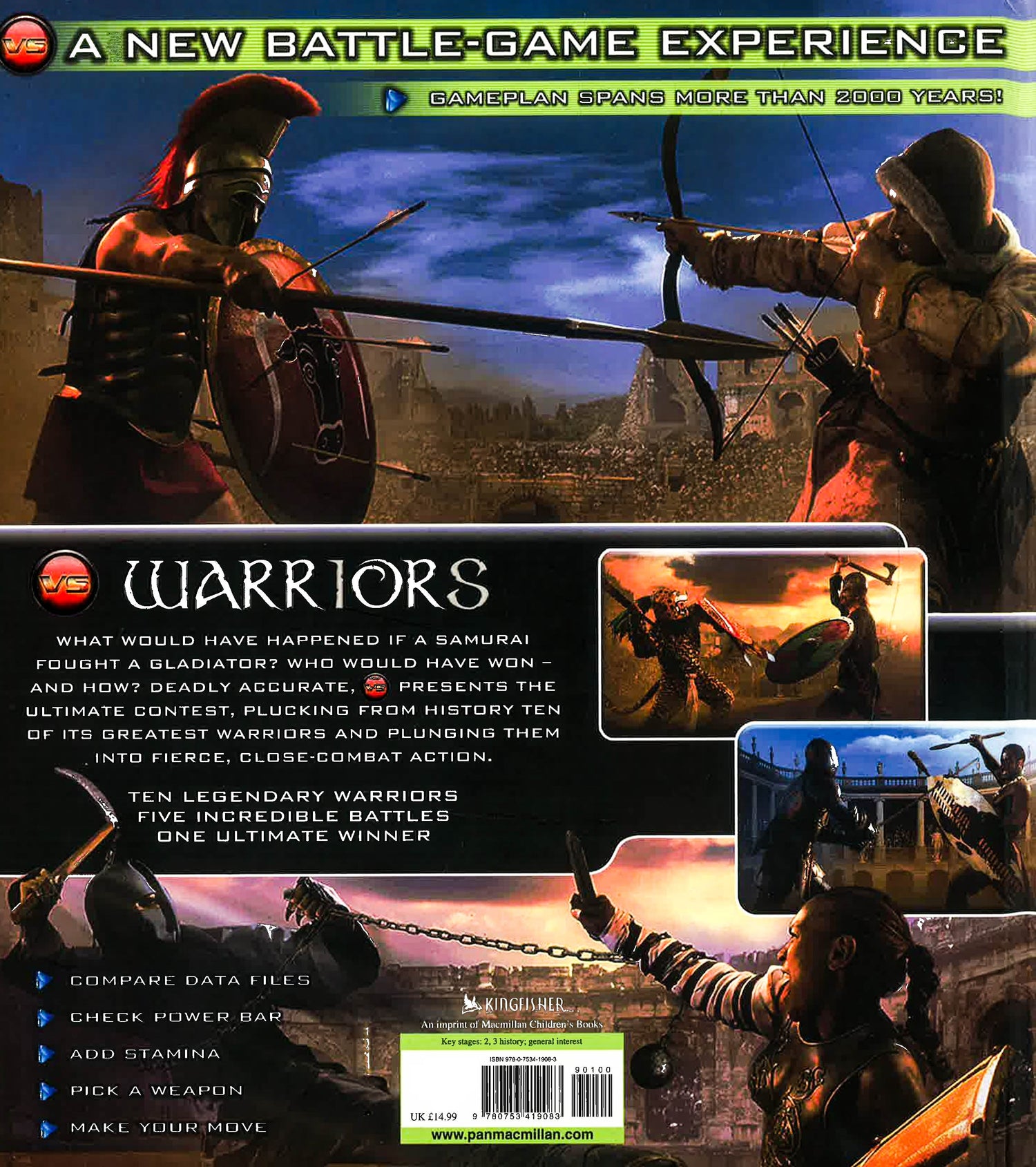 What would happen if a samurai warrior fought a gladiator? Who would win - and why? VS: WARRIORS recreates five deadly battles: Viking vs. Aztec; samurai vs. gladiator; Spartan vs. Mongol; female ninja vs. female gladiator; and knight vs. Zulu. Data files compare and contrast weaponry, armour, tactics and codes of honour, while background spreads provide historical and cultural context. And at the end of the book, one of the ten is crowned history's ultimate warrior.