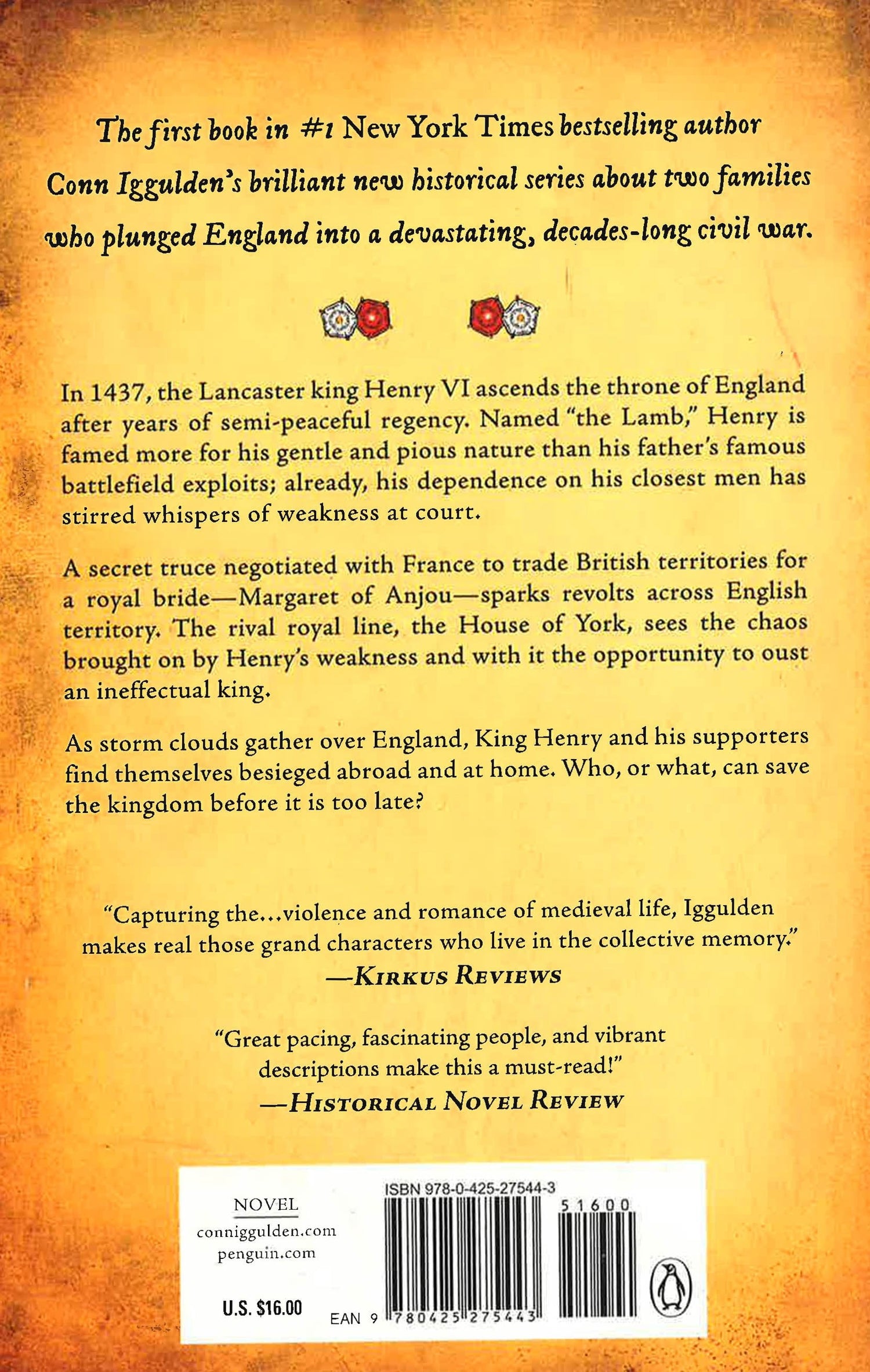The first book in #1 New York Times bestselling author Conn Iggulden's brilliant new historical series about two families that plunged England into a devastating, decades-long civil war. In 1437, the Lancaster king Henry VI ascends the throne of England after years of semi-peaceful regency. Named "The Lamb," Henry is famed more for his gentle and pious nature than his father's famous battlefield exploits; already, his dependence on his closest men has stirred whispers of weakness at court. A secret truce negotiated with France to trade British territories for a royal bride--Margaret of Anjou--sparks revolts across English territory. The rival royal line, the House of York, sees the chaos brought on by Henry's weakness and with it the opportunity to oust an ineffectual king. As storm clouds gather over England, King Henry and his supporters find themselves besieged abroad and at home. Who or what can save the kingdom before it is too late? "It's been said that Game of Thrones is the Wars of the Roses written as fantasy: this is the real thing, more glorious [and] more passionate."--M. C. Scott, author of Rome: The Emperor's Spy "Capturing the...violence and romance of medieval life, Iggulden makes real those grand characters who live in the collective memory."--Kirkus Reviews "Great pacing, fascinating people, and vibrant descriptions make this a must read!"--Historical Novel Review