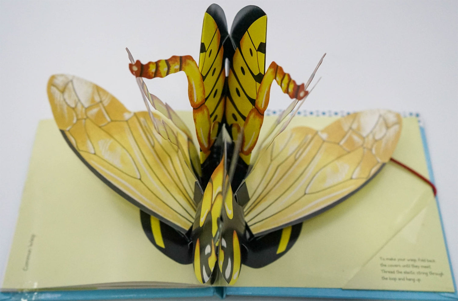 Little books that turn into bugs! Suitable for hanging and bouncing! A pop-up book about wasps reveals the insects extraordinary colors, wings, and stingers, as well as how they construct their nests out of different materials, and navigate by the position of the sun. A paper wasp sculpture can be hung and bounced from the elastic in the back cover. "