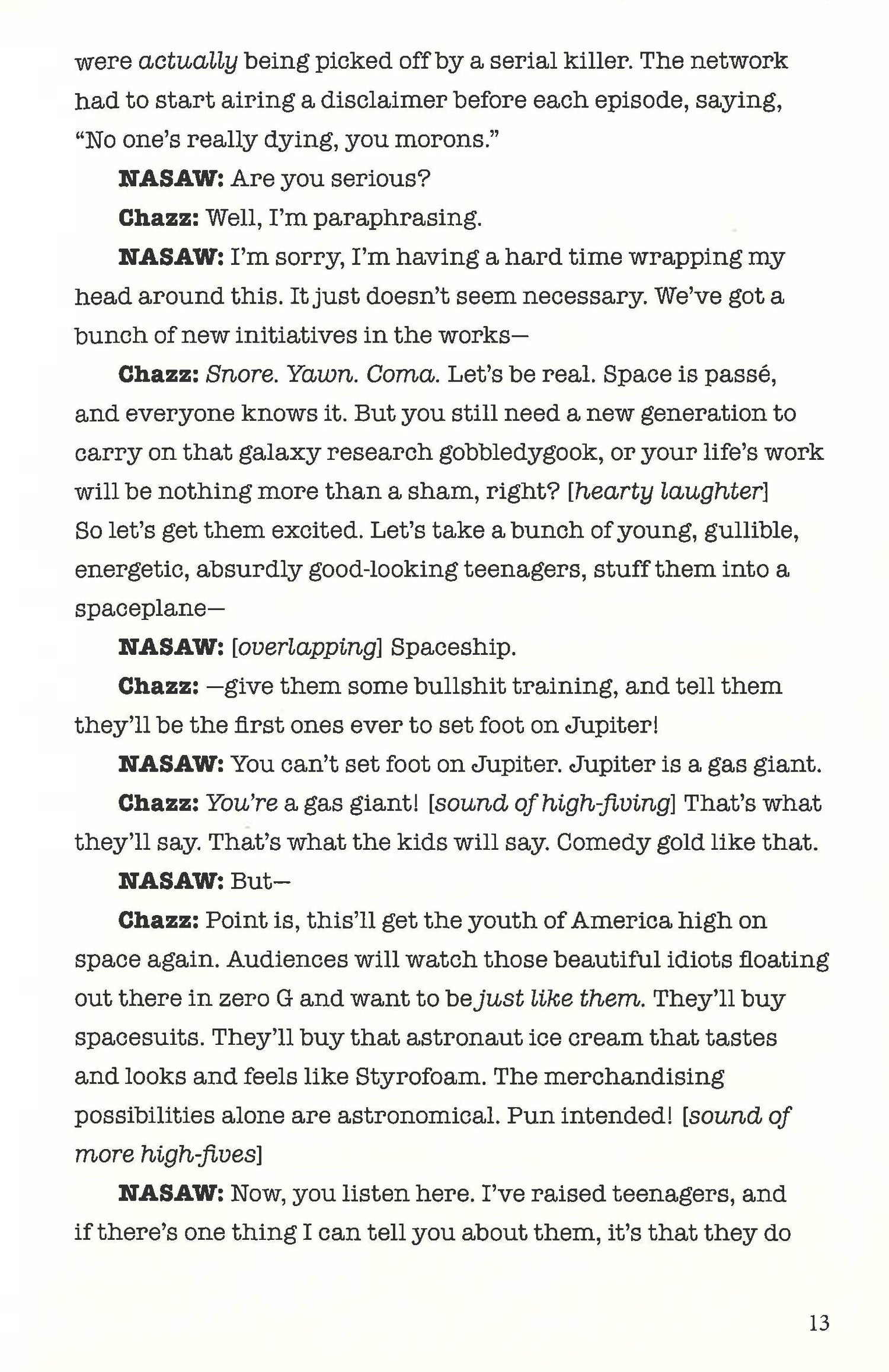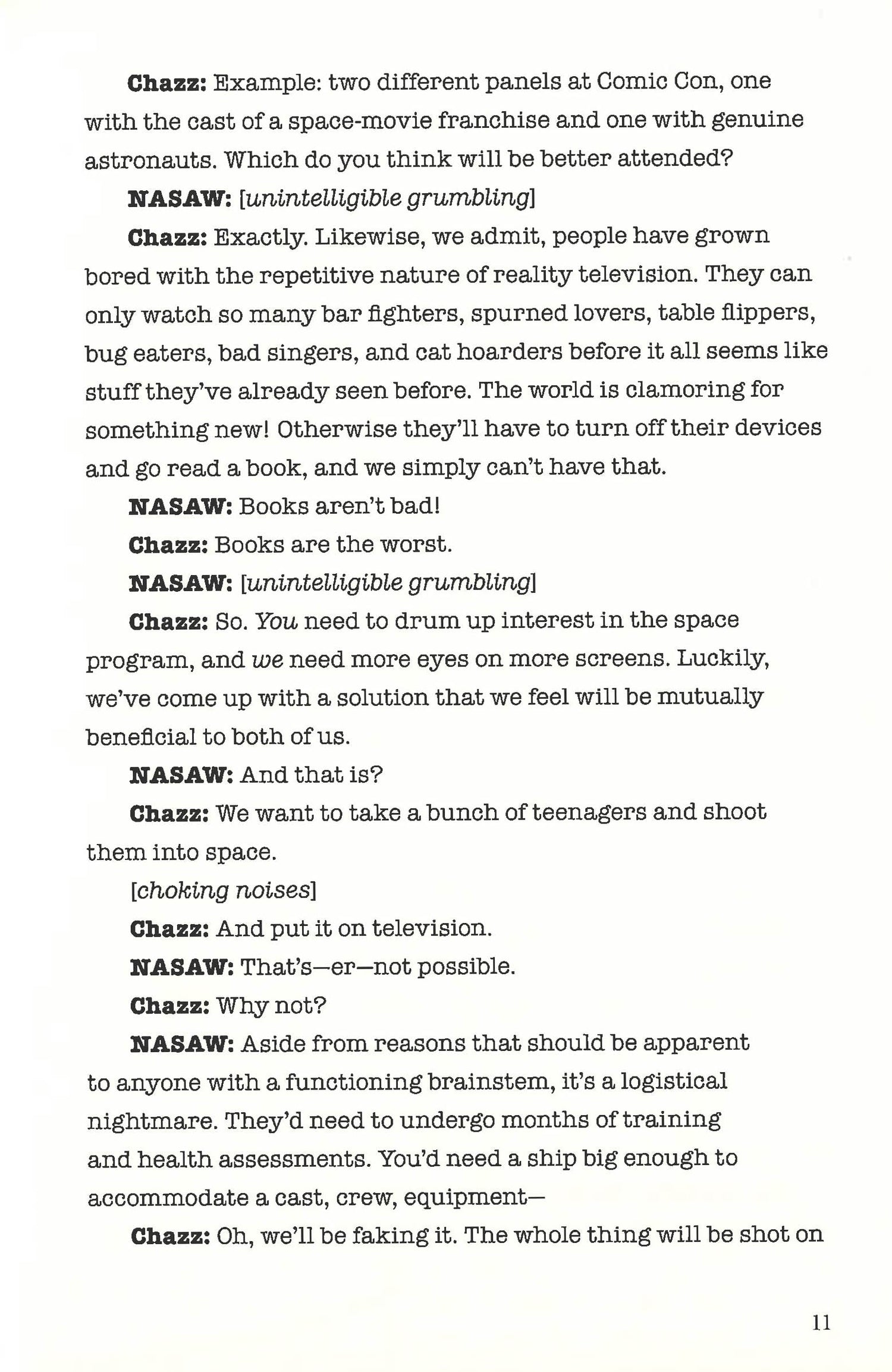 Cram ten hormonal teens into a spaceship and blast off: that's the premise for the ill-conceived reality show Waste of Space. The kids who are cast know everything about drama--and nothing about the fact that the production is fake. Hidden in a desert warehouse, their spaceship replica is equipped with state-of-the-art special effects dreamed up by the scientists partnering with the shady cable network airing the show. And it's a hit! Millions of viewers are transfixed. But then, suddenly, all communication is severed. Trapped and paranoid, the kids must figure out what to do when this reality show loses its grip on reality. *This book may have remainder mark*