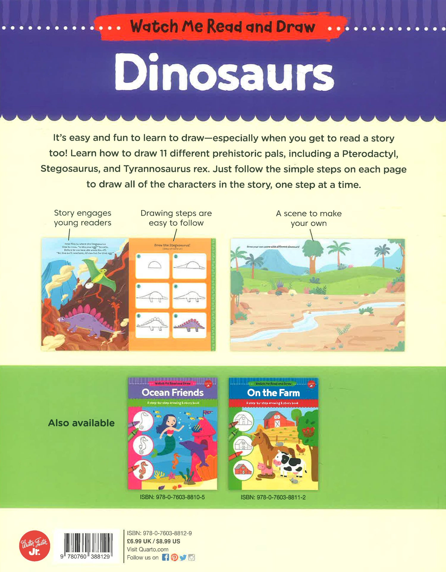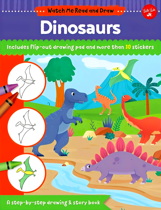Watch Me Read and Draw: Dinosaurs is a step-by-step drawing and story book that teaches kids how to draw 11 different dinosaurs with simple steps and a fun, engaging story.