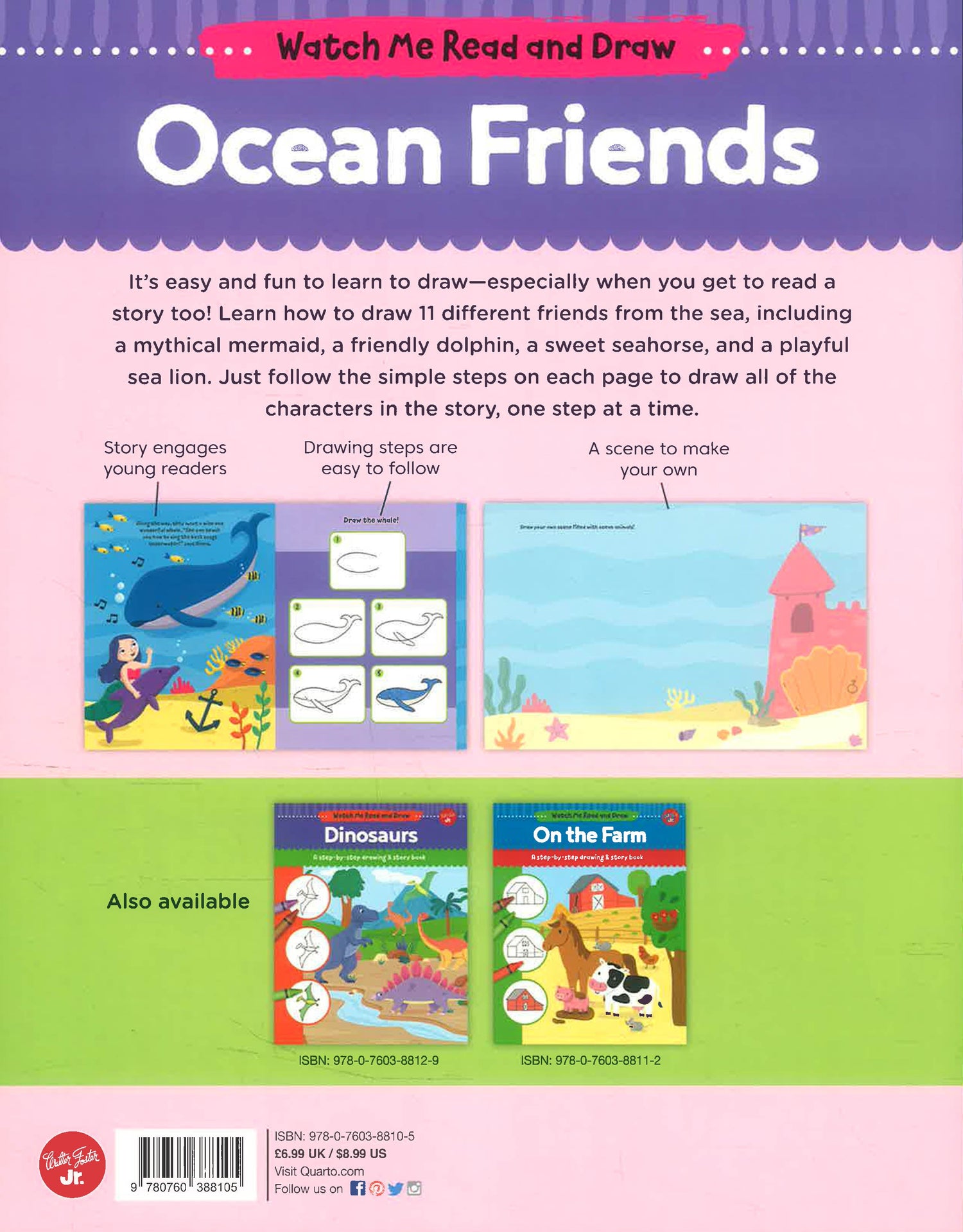 Watch Me Read and Draw: Ocean Friends is a step-by-step drawing and story book that teaches kids how to draw 11 different friends from the sea with simple steps and a fun, engaging story.