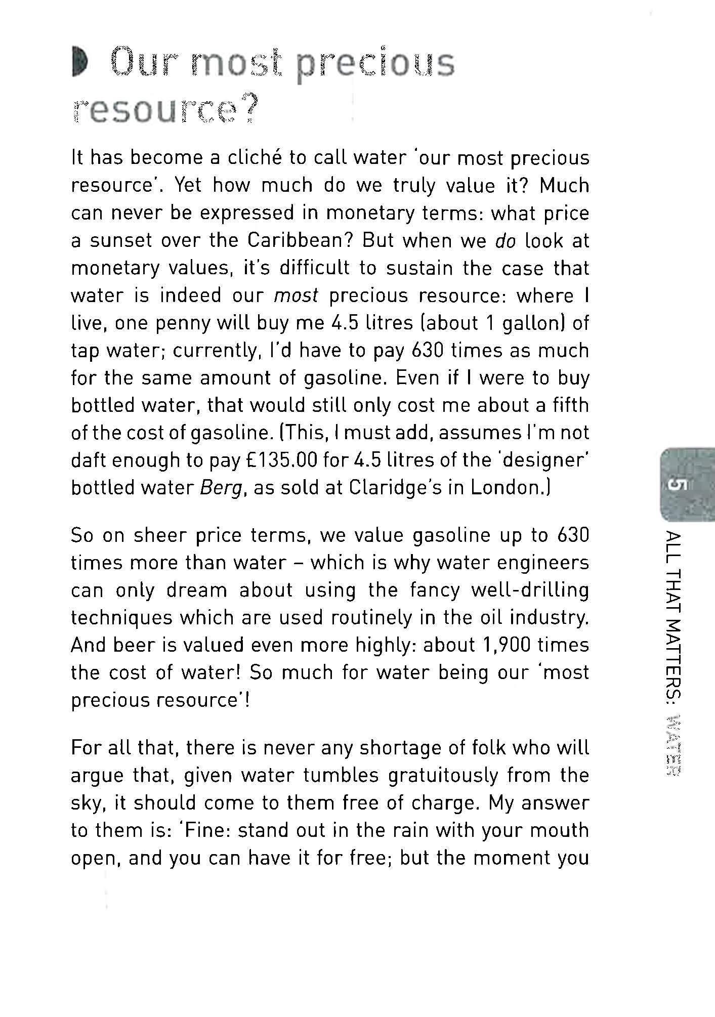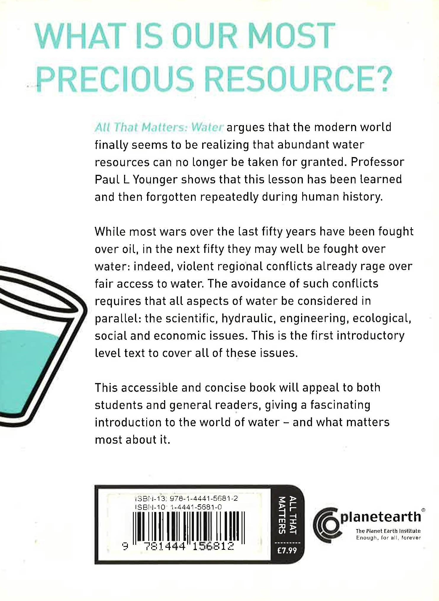 The world's population is increasing; but its supply of water is not. Empires have grown and declined due to discovery and exhaustion of their water sources, and now the West is at last catching on to the fact that abundance of water can no longer be taken for granted. For the last fifty years, wars have been fought over oil; for the next fifty, they may be fought over water (in fact, some local wars already have been). Remarkably, this new book is the first to bring together the ecological, geographical, political and scientific aspects of water. Its author, Professor Paul Younger, is one of the UK's leading experts on water - a substance of which we consume 150 litres of a day, and in its bottled form are willing to pay more for than for petrol.