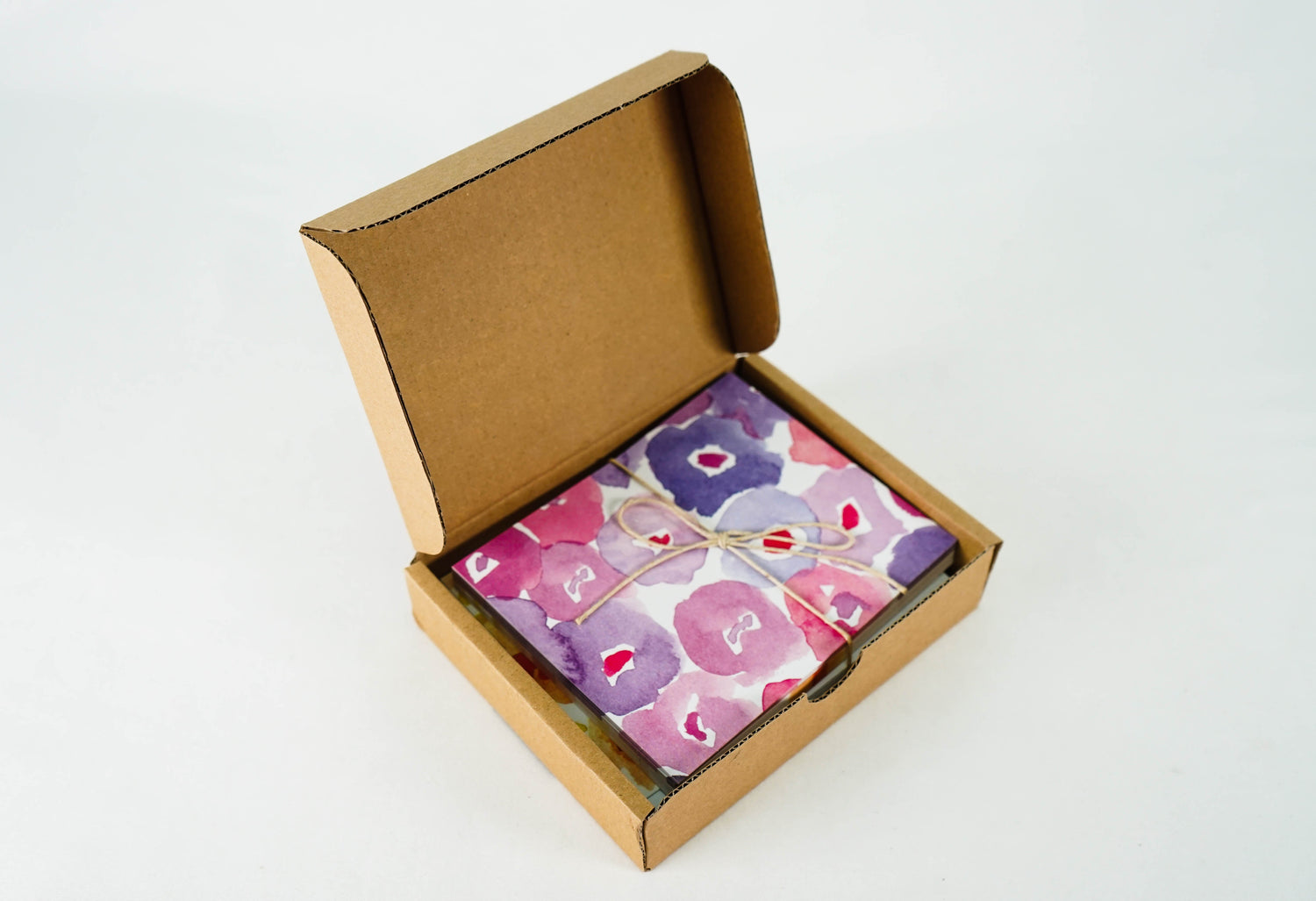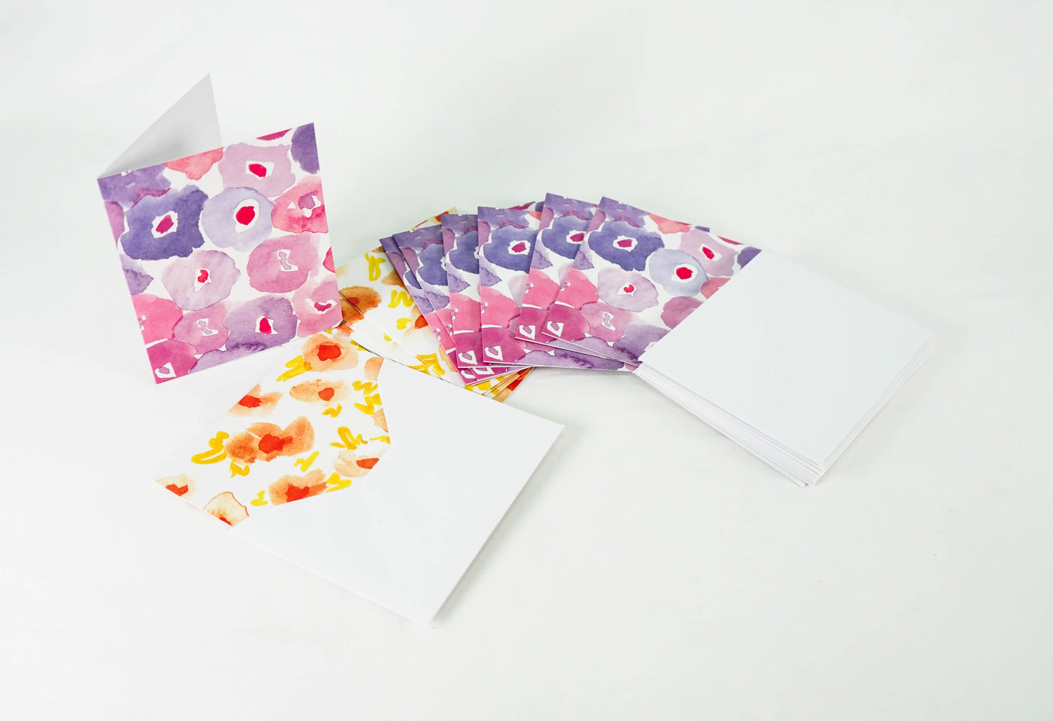 16 notecards & envelopes, 8 each of 2 images. Cards, envelopes and packaging made from recycled materials. Packaged in a flip-top box made from corrugated cardboard. Cards printed with soy-based inks on luxurious uncoated paper stock. Cards & envelopes bundled together with a decorative twine tie. Style your life the ecoconsious way. GreenNotes stationery combine old-world charm with modern design. Cards, envelopes and packaging are printed with soy-based inks and made with environmentally friendly materials.
