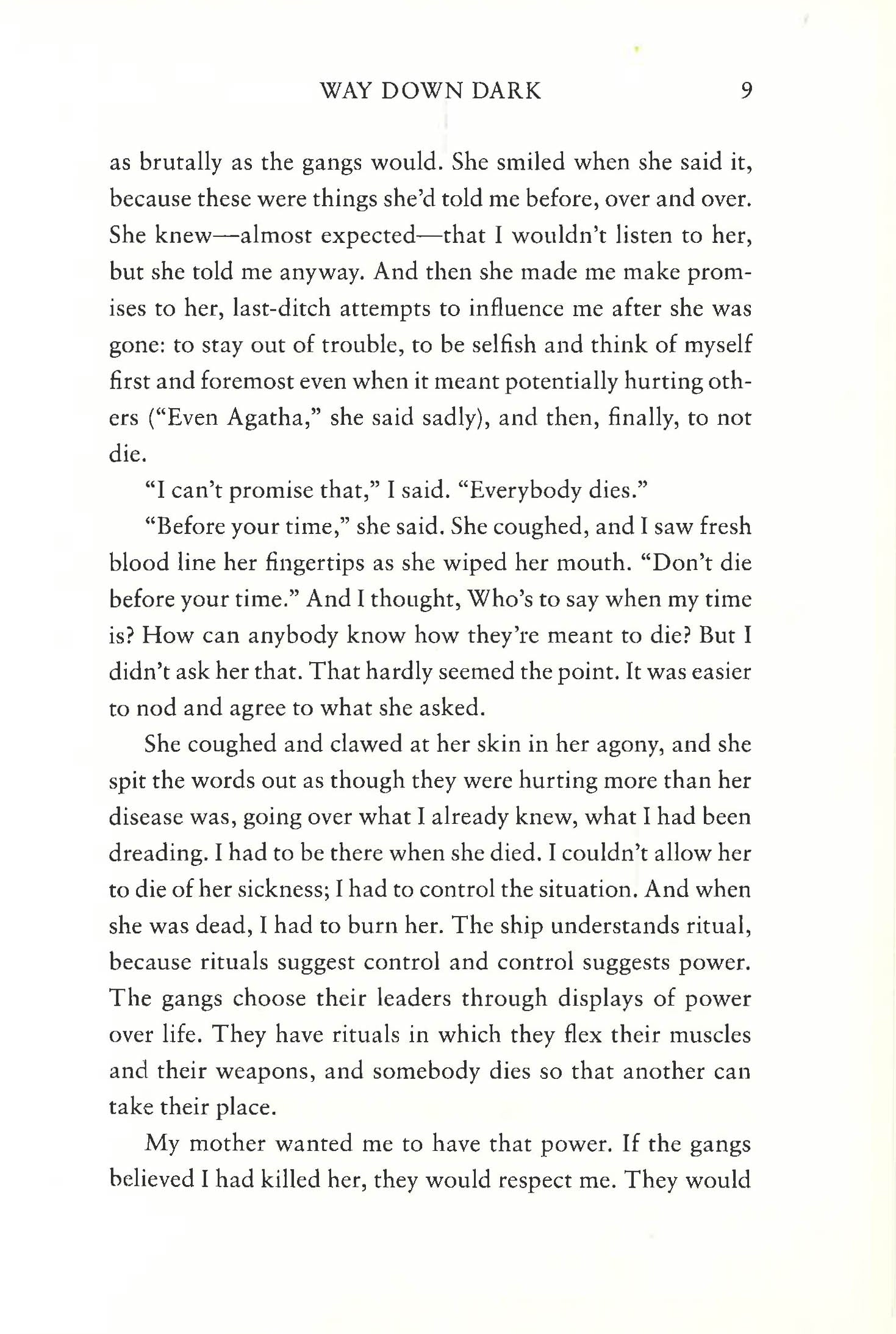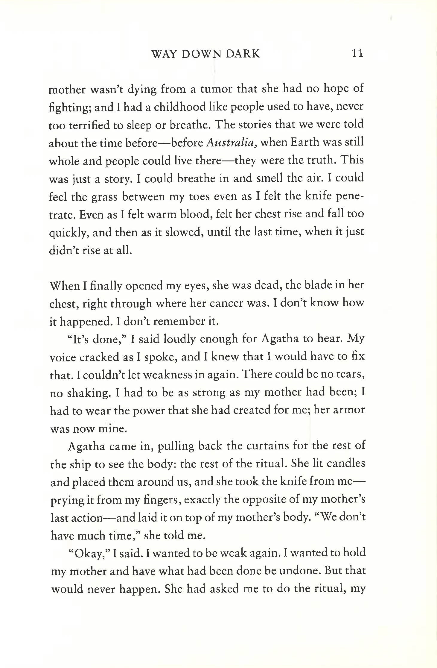 Seventeen-year-old Chan's ancestors left a dying Earth hundreds of years ago, in search of a new home. Generations later, they are still searching . . . Every day aboard the interstellar transport ship Australia is a kind of hell, where no one is safe, no one can hide. Indeed, the only life Chan's ever known is one of endless violence. A life of survival. Fiercely independent and entirely self-sufficient, she has learned to keep her head down as much as possible, careful not to draw attention to herself amidst the mayhem. For the Australia is a ship of death, filled with murderous gangs and twisted cults, vying for supremacy in a closed environment with limited resources and no hope. And then one day Chan makes an extraordinary discovery--there may be a way to return the Australia to Earth. But doing so will only bring her to the attention of the fanatics and murderers who control life aboard the ship, putting her and everyone she loves in terrible danger. Is it worth endangering her life and the lives of her few friends and loved ones for an uncertain return to a home world that may be uninhabitable? Especially since to do so she must descend into the deep dark in the bowels of the ship, which is piled high with the bodies and the secrets of the dead . . .