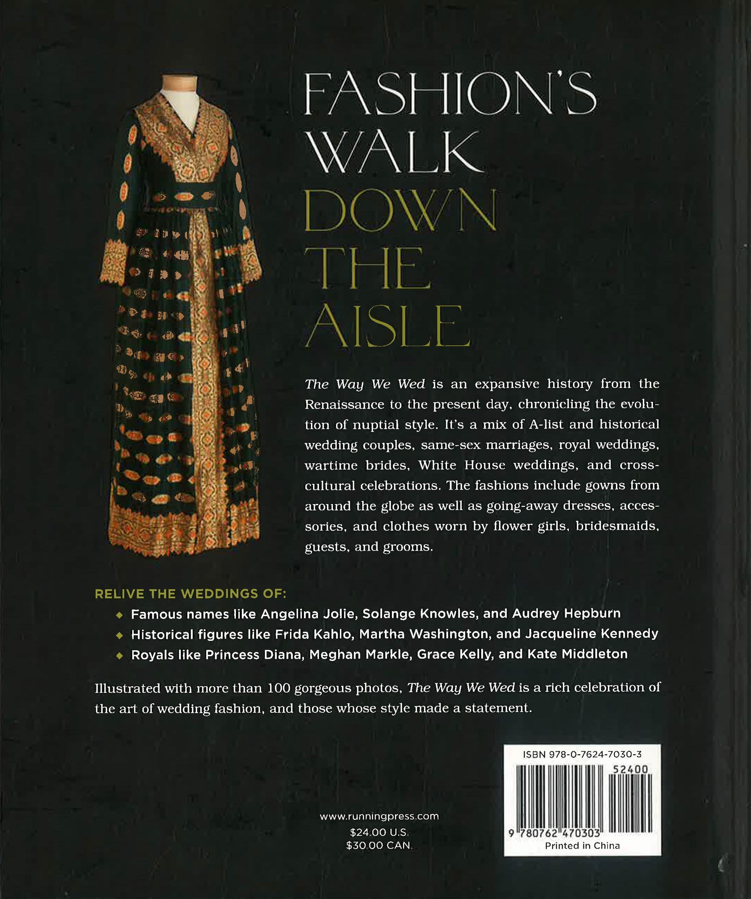The Way We Wed: A History of Wedding Fashion presents styles and stories from the Renaissance to the present day, chronicling evolving fashions as well as changing customs, lifestyles, and values. And because all wedding attire has a tale to tell, The Way We Wed also reveals fascinating personal stories of those who wore it.