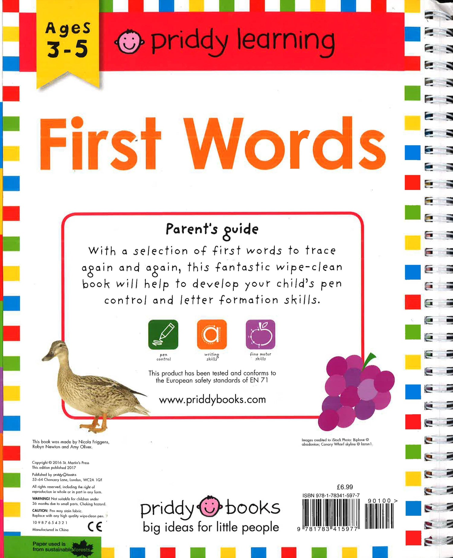 Help your preschooler learn how to trace, copy and write key first words with this colorful, practical and fun wipe-clean book. The sturdy board pages are full of great exercises and activities for your child to complete, helping them to develop their letter and word formation skills. The special pen included with the book allows all the exercises to be done over and over – simply wipe away with a cloth and try again!