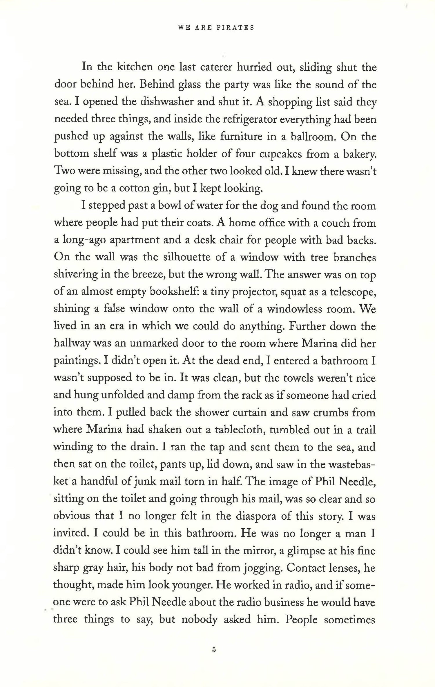 A boat has gone missing. Goods have been stolen. There is blood in the water. It is the 21st century, and a crew of pirates is terrorizing the San Francisco Bay. Phil is a husband, a father, a struggling radio producer, and the owner of a large condo with a view of the water. But he'd like to be a rebel and a fortune hunter. Gwen is his daughter. She's fourteen. She's a student, a swimmer, and a best friend. But she'd like to be an adventurer and an outlaw. Phil teams up with his young, attractive assistant. They head for the open road, attending a conference to seal a deal for a new show. Meanwhile, Gwen teams up with a new, fierce friend and some restless souls. They head for the open sea, stealing a boat to hunt for treasure.We Are Pirates is a novel about our desperate searches for happiness and freedom, about our wild journeys beyond the boundaries of our ordinary lives. Also, it's about a teenage girl who pulls together a ragtag crew to commit mayhem in the San Francisco Bay, while her hapless father tries to get her home.