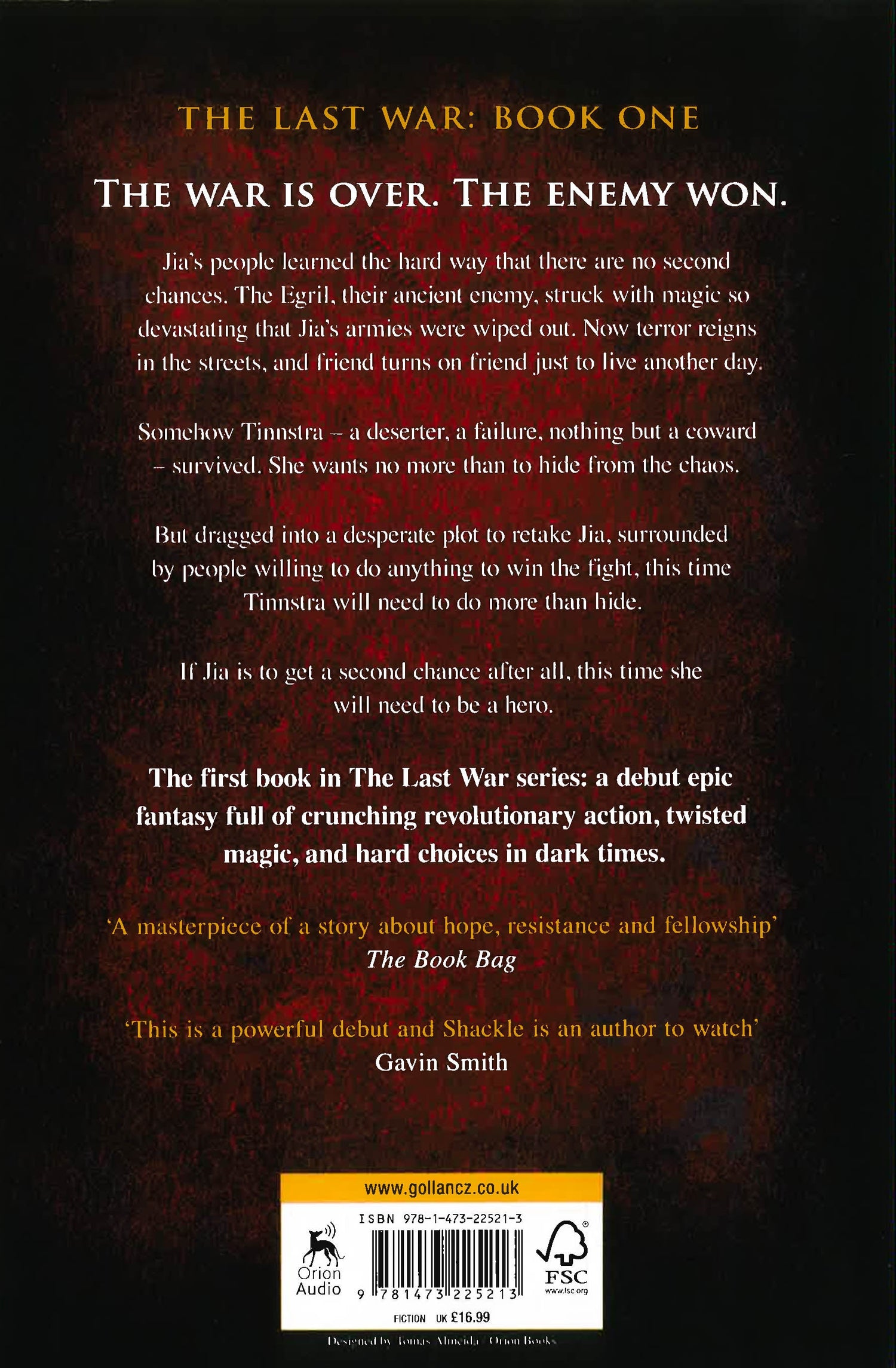 The first book in The Last War series: a debut epic fantasy full of crunching revolutionary action, twisted magic, and hard choices in dark times.