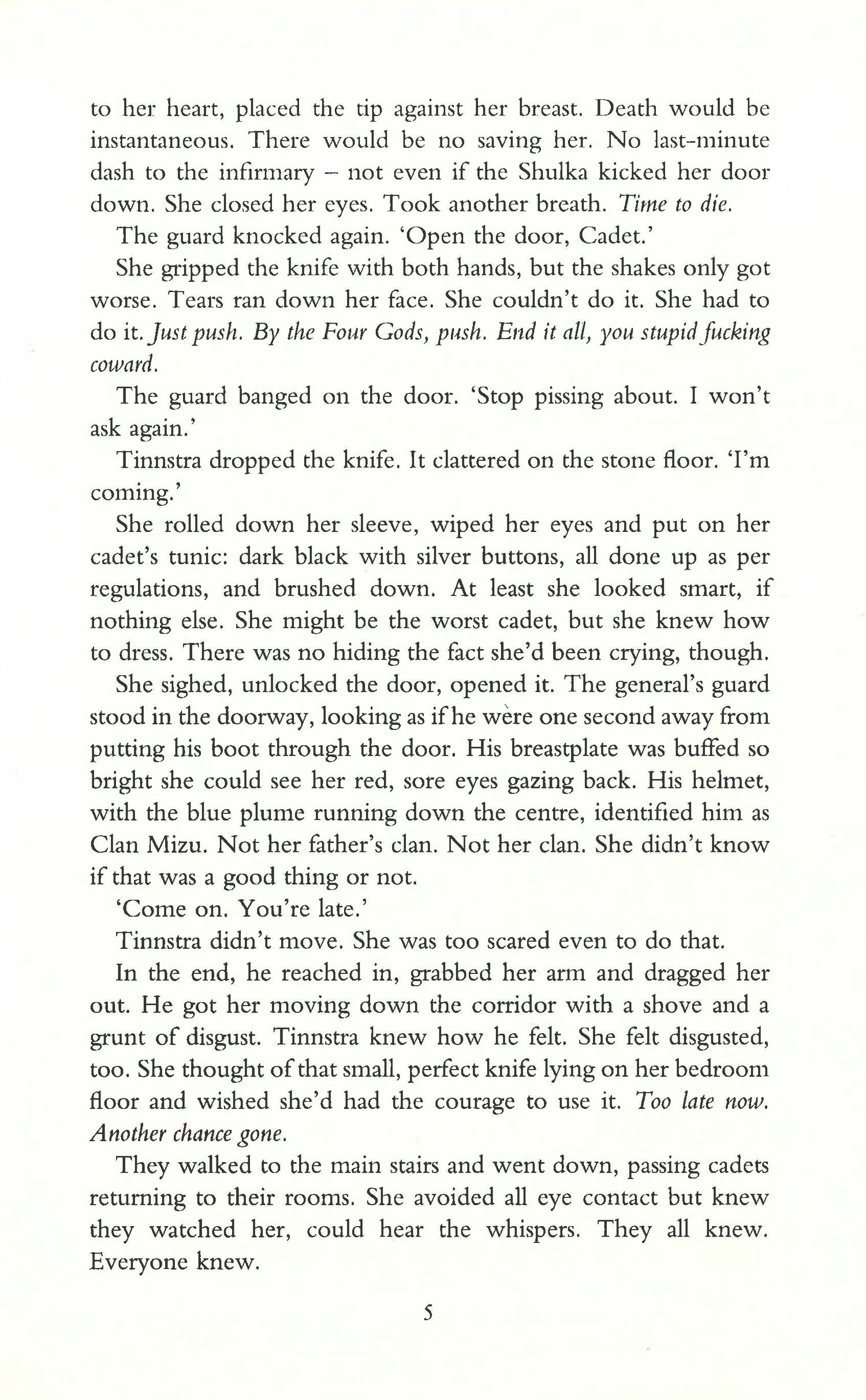 Somehow Tinnstra - a deserter, a failure, nothing but a coward - survived. She wants no more than to hide from the chaos.
