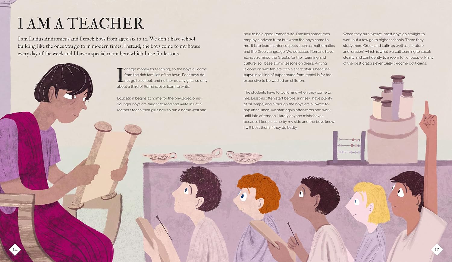From a young slave boy to a fierce gladiator, a washerwoman to a wealthy lady, and a mosaic artist to the emperor himself - each one will share with you the story of their own daily life. Together, they are the Romans.
