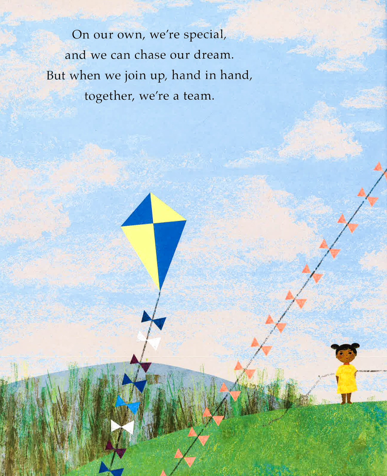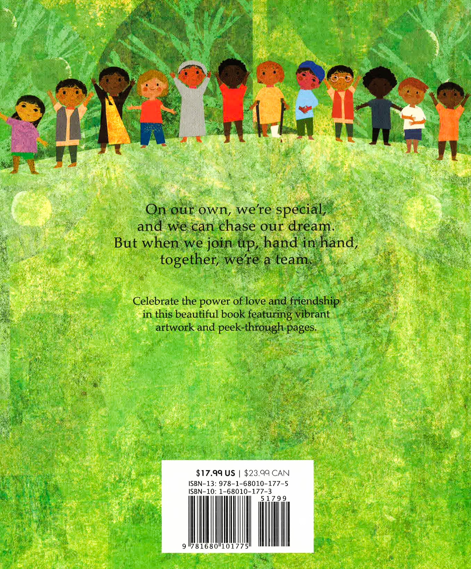 Each of us is wonderful and special on our own. But when we team up with friends, family, and even those whom we don't know, we can make amazing things happen. This inspiring book, which features vibrant artwork and die-cut pages, takes readers on a journey to understand that while we are able to accomplish much on our own, we will achieve even more, and be able to affect real change, when we join with others.