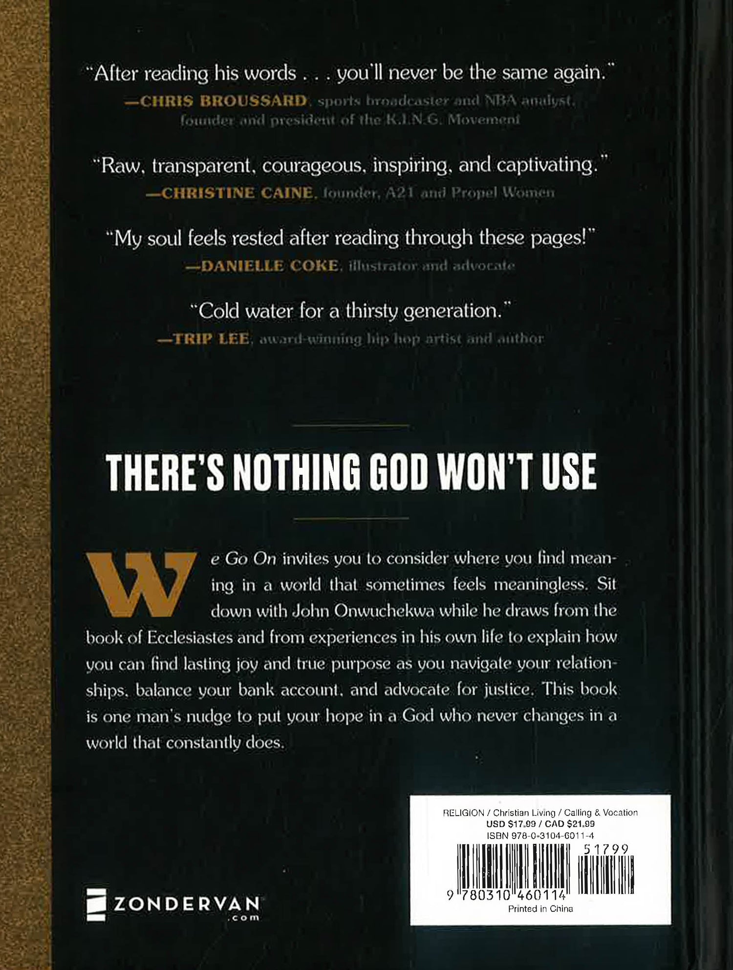 Do you often ask the question "What is my purpose in life?" Rich with black-and-white photography, powerful stories, and life-changing reflections from the book of Ecclesiastes, We Go On, by pastor and entrepreneur John Onwuchekwa calls you to find the true answer to the question: Why am I here?